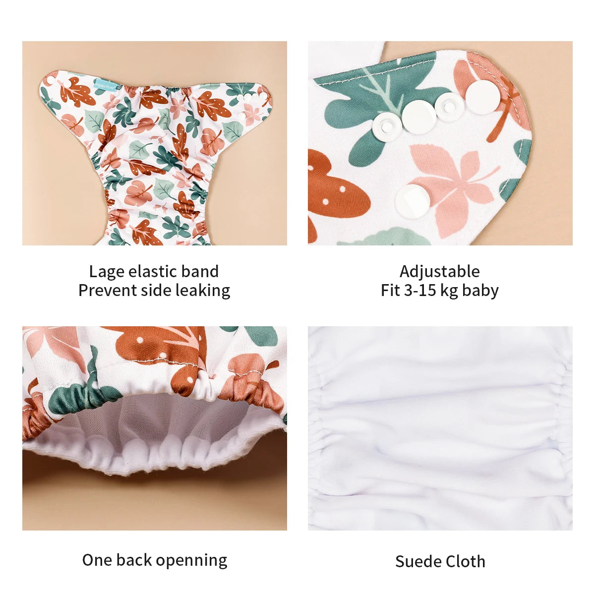 - Adjustable Size: With a size fit for babies weighing between 3-15kg, our cloth diapers grow with your baby, providing a snug and comfortable fit at every stage.