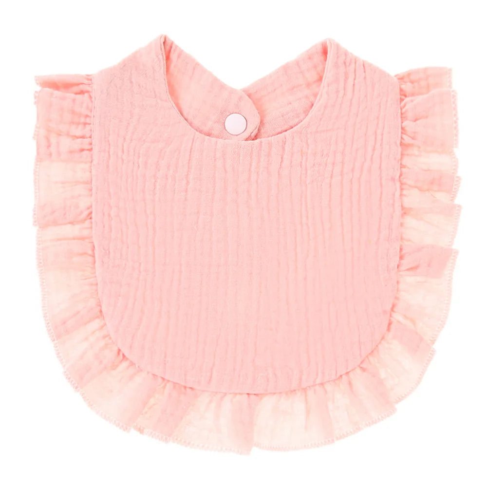 Ruffle Lace Detailing: Adding a touch of charm and elegance, our bib features delicate ruffle lace detailing along the edges. Not only does it enhance the aesthetic appeal of the bib, but it also helps catch any spills or dribbles, keeping your baby clean and tidy.