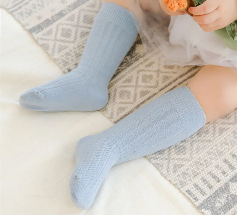 Introducing our adorable Baby Knee-High Socks, the perfect blend of style and comfort for your little one. Crafted from high-quality cotton, these plain long socks are designed to keep tiny feet cozy in all seasons.