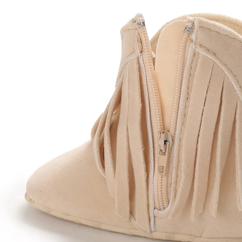 These baby boots feature a soft cloth bottom, providing the utmost comfort for your little one's delicate feet. The zip closure makes them convenient to put on and take off, while the fashionable design adds a touch of style.