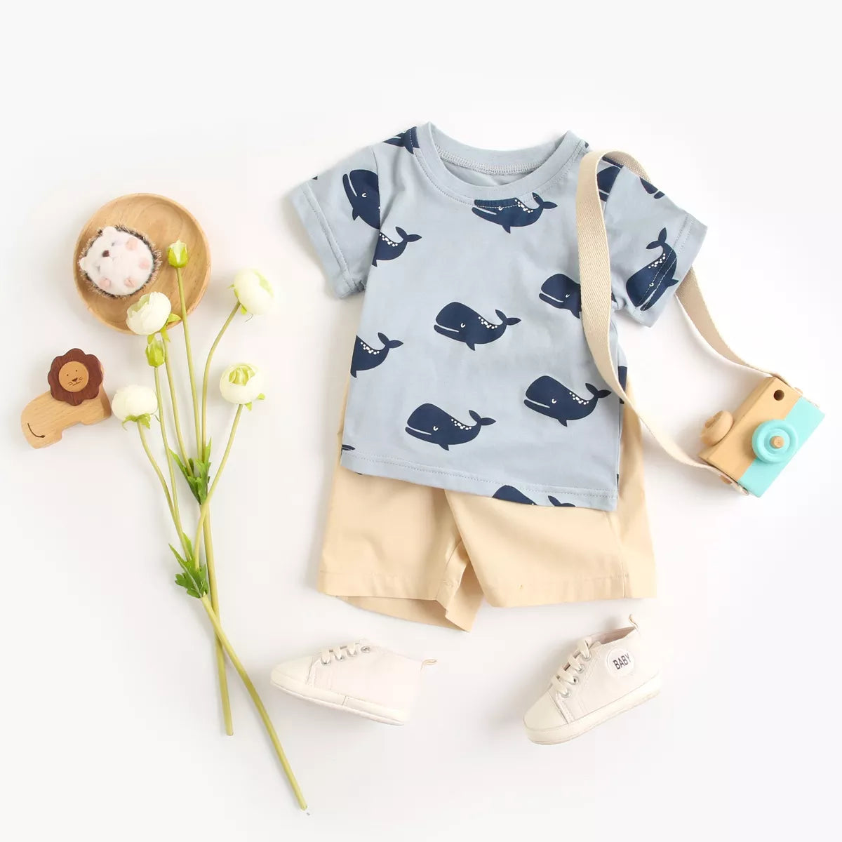 Introducing the Adorable Cartoon Boys Clothing Set: Short Sleeve Cotton Tops + Shorts
