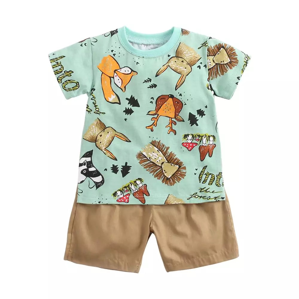 Cartoon Boys Clothing Set: Short Sleeve Cotton Tops + Shorts