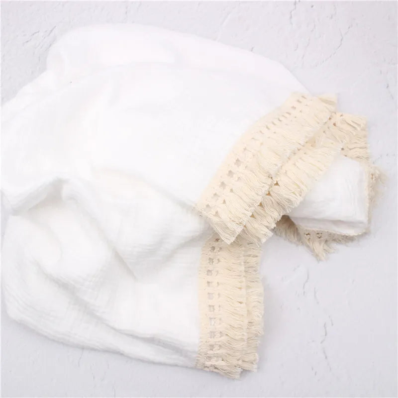 Cotton Swaddle Blankets: Newborn Tassel Receiving Wrap