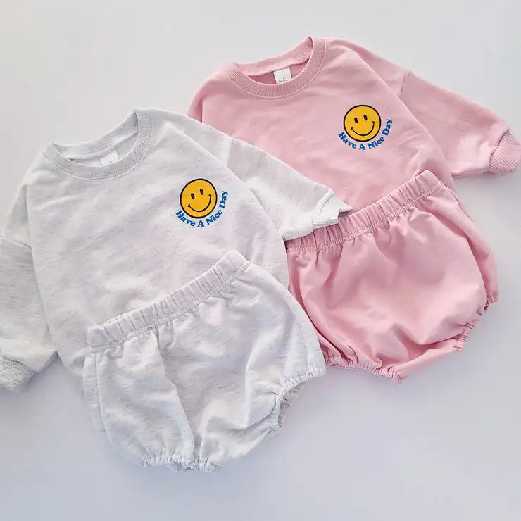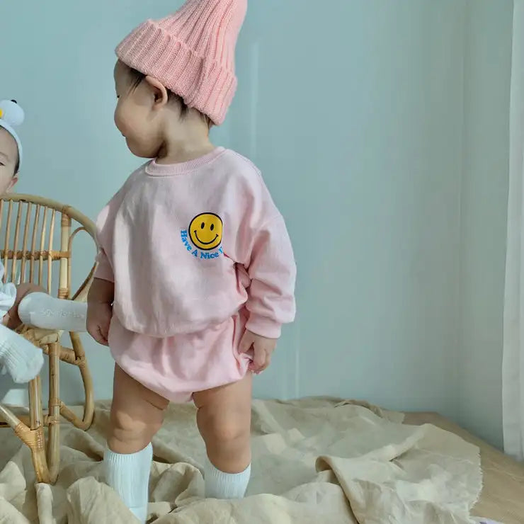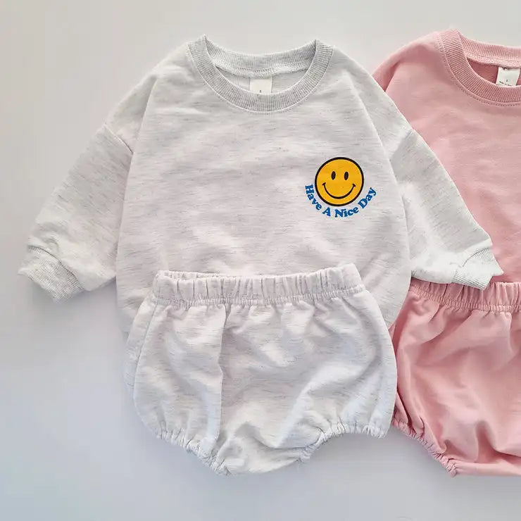 - Adorable Design: Featuring a smiley face print on the sweatershirt, this outfit adds a fun and playful touch to your little one's wardrobe.
