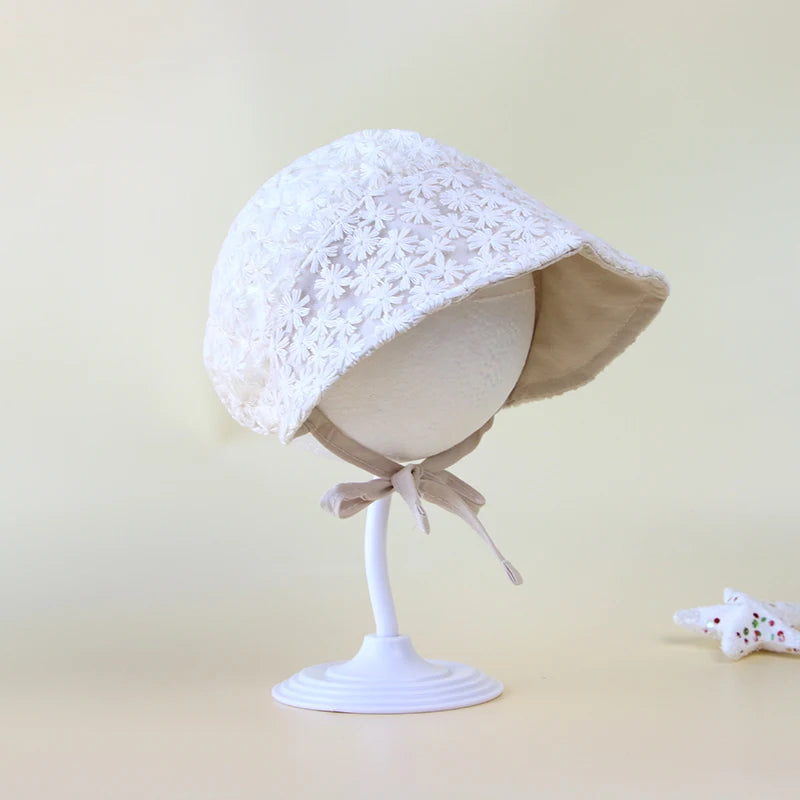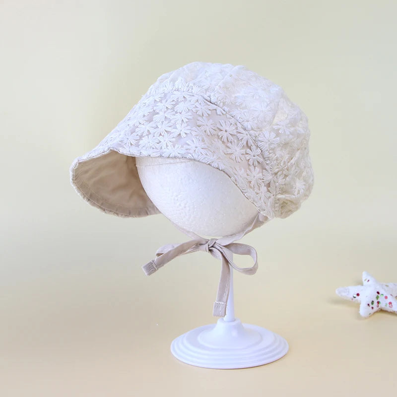 Découvrez notre superbe chapeau d'été en dentelle fleurie pour bébé : la casquette de soleil idéale pour les princesses