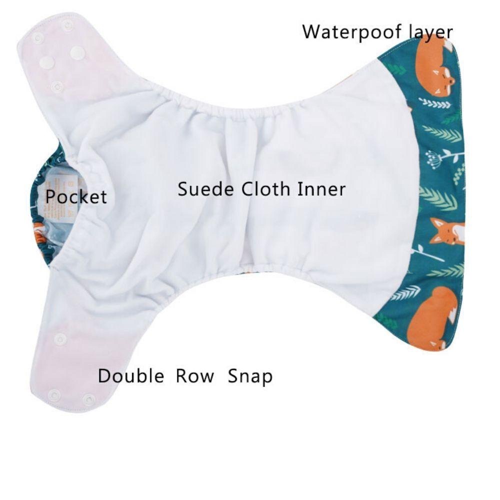 - Inner layer: suede cloth inside, it does not hold moisture itself, the moisture gets drawn away to the insert to keep your baby dry.