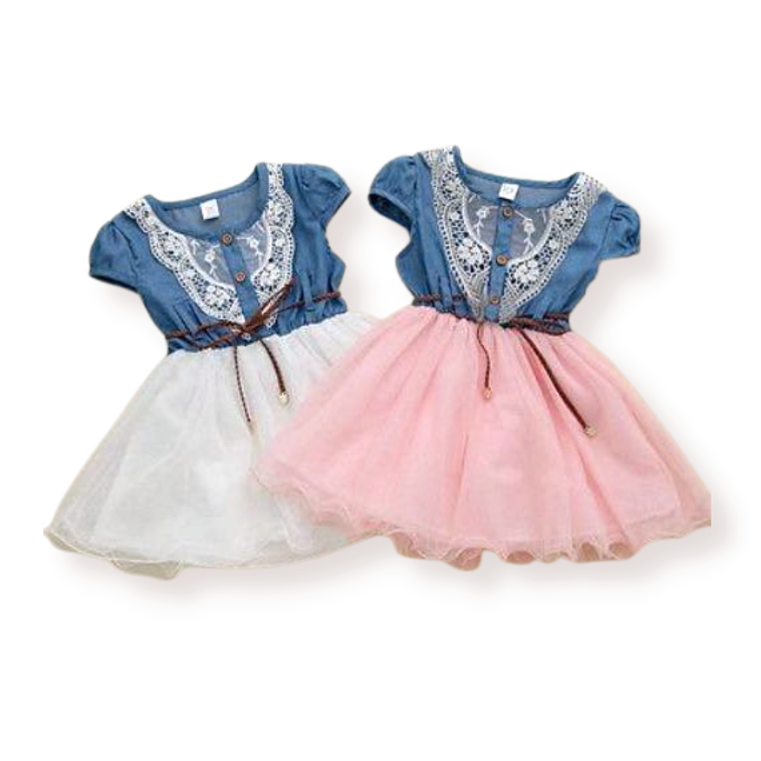 Denim Tulle Lace Dress