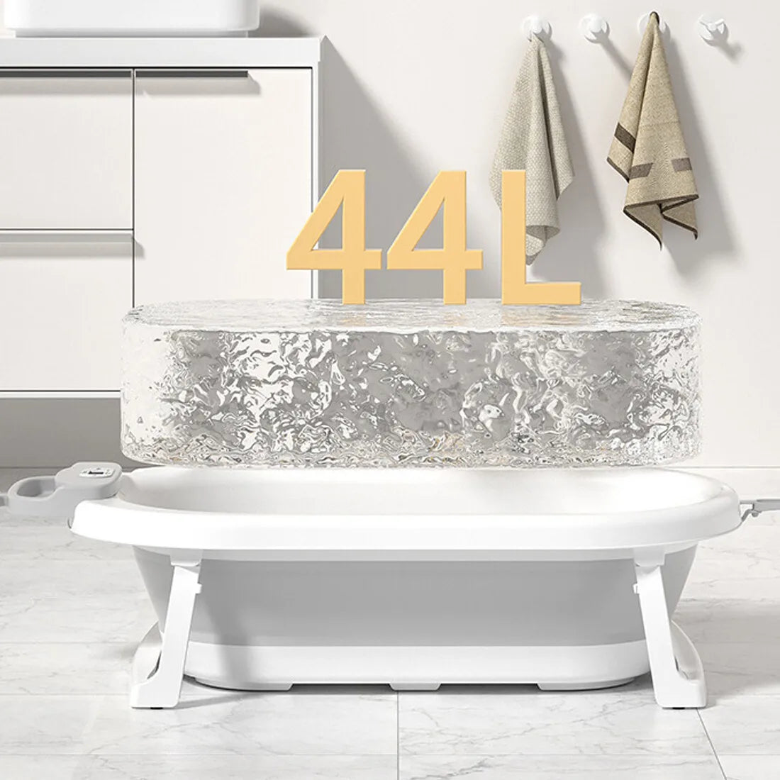 Extra-Large Foldable Baby Bathtub (44L) with Digital Temperature Sensor, Non-Toxic Material, and Machine-Washable Bath Cushion for Newborns to Toddlers