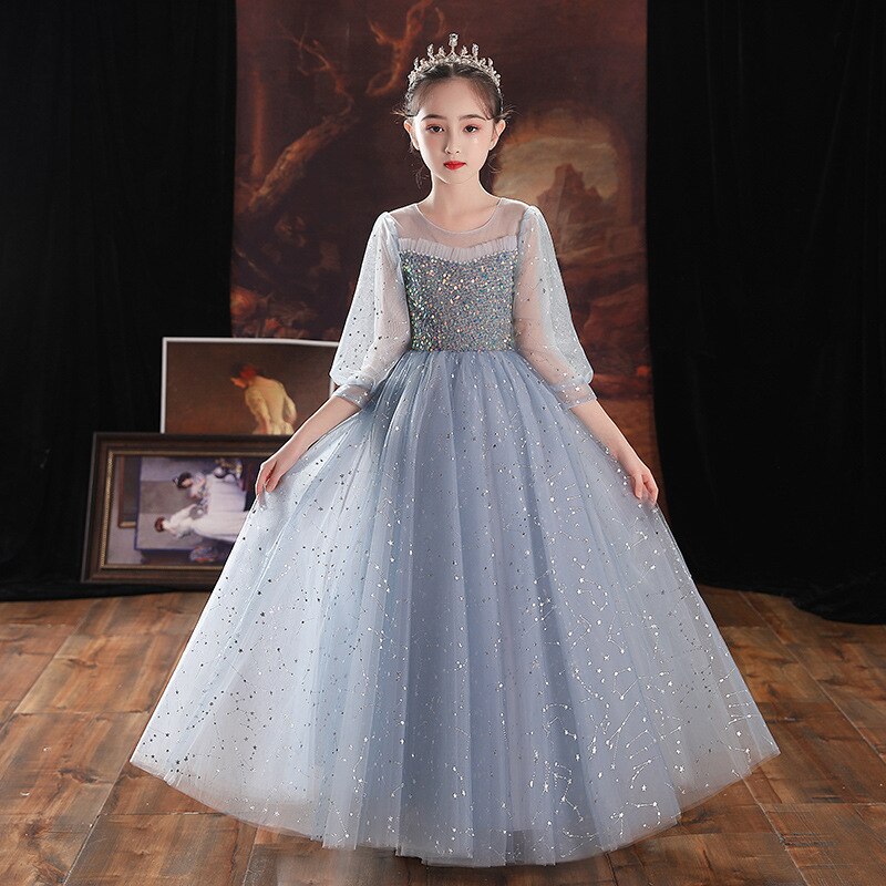 The epitome of elegance, a single light-colored gown like this Sequin Embroidery Detail A-line Long Gown will make your little girl stunningly beautiful in the crowd. Very comfortable formal fashion wear for a picture-perfect moment on special occasions like weddings, debuts, and the like.
