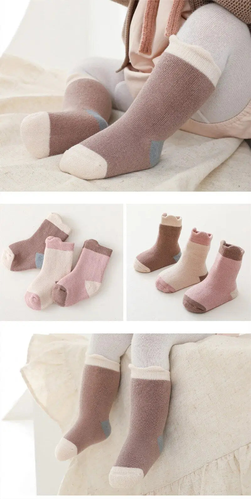 Introducing Our Cozy 3 Pairs/Set Thick Warm Baby Socks - Autumn/Winter