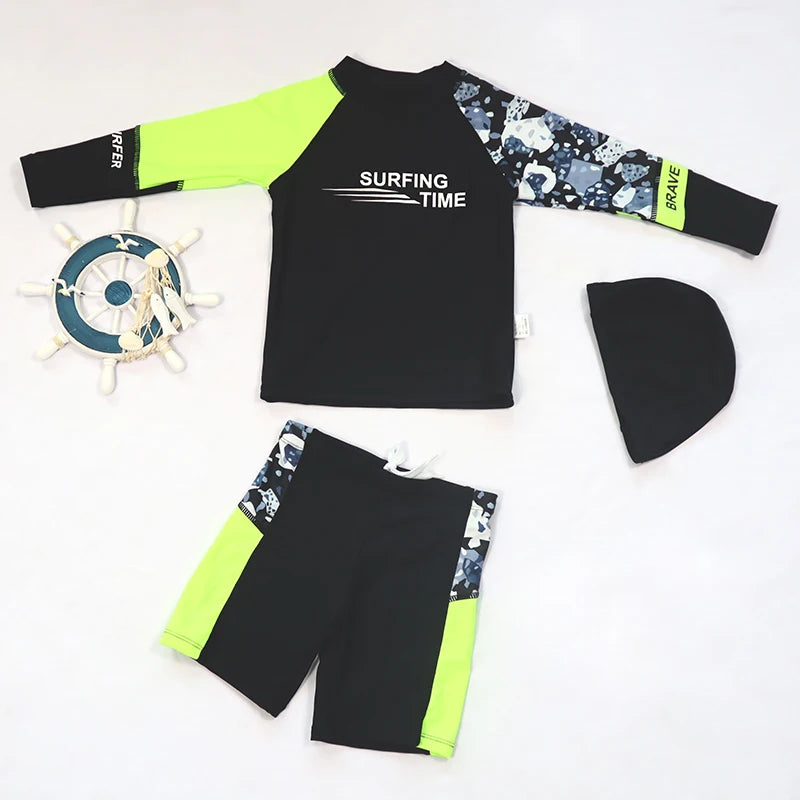 Introducing Our 3-Piece Boys' Swimsuit Set: The Ultimate Sun Protection Ensemble for Fun in the Sun!