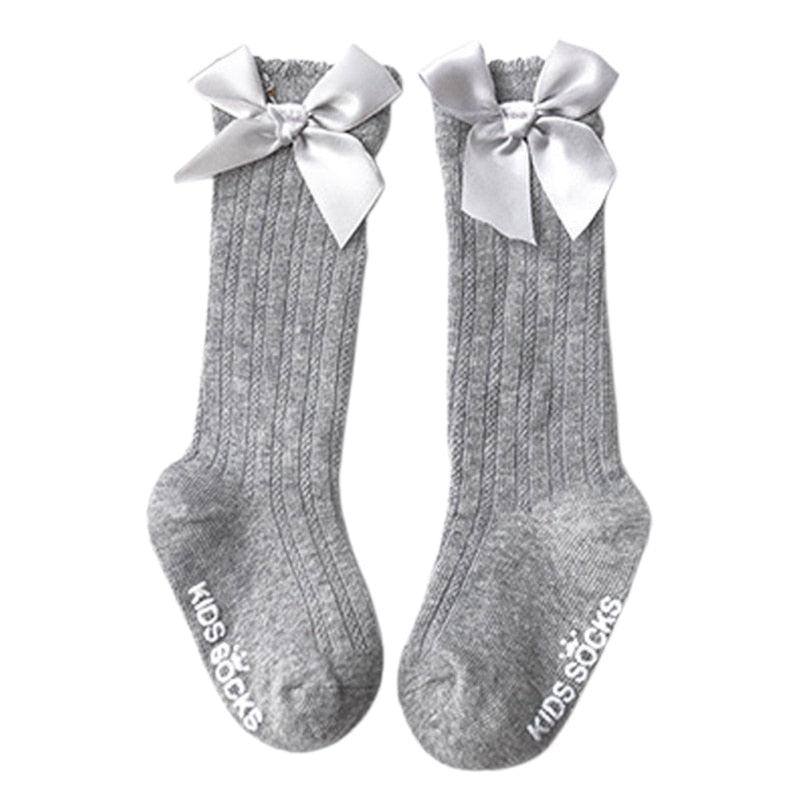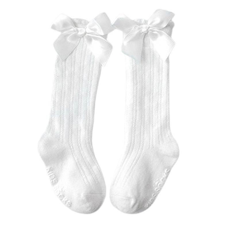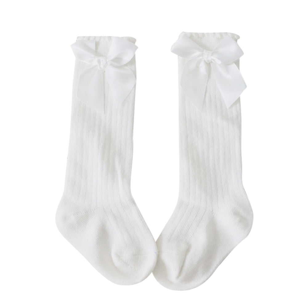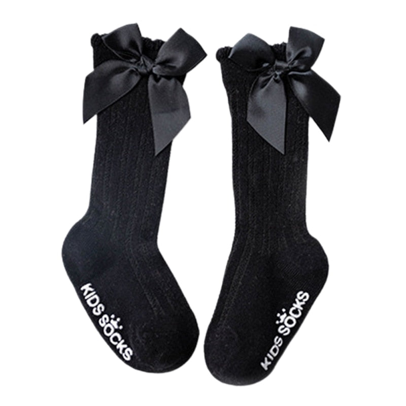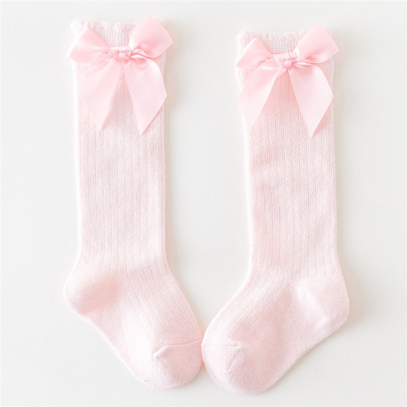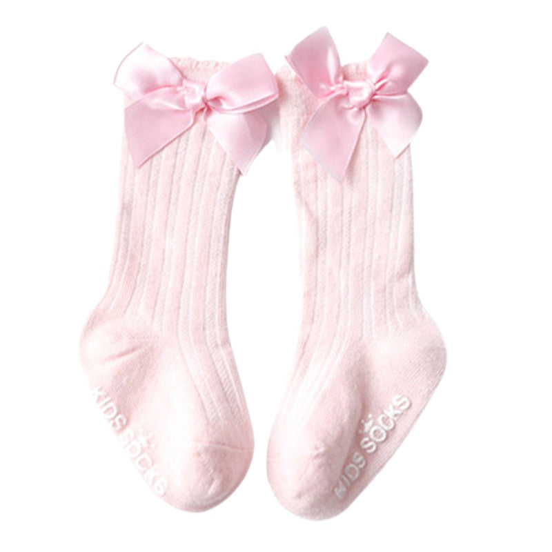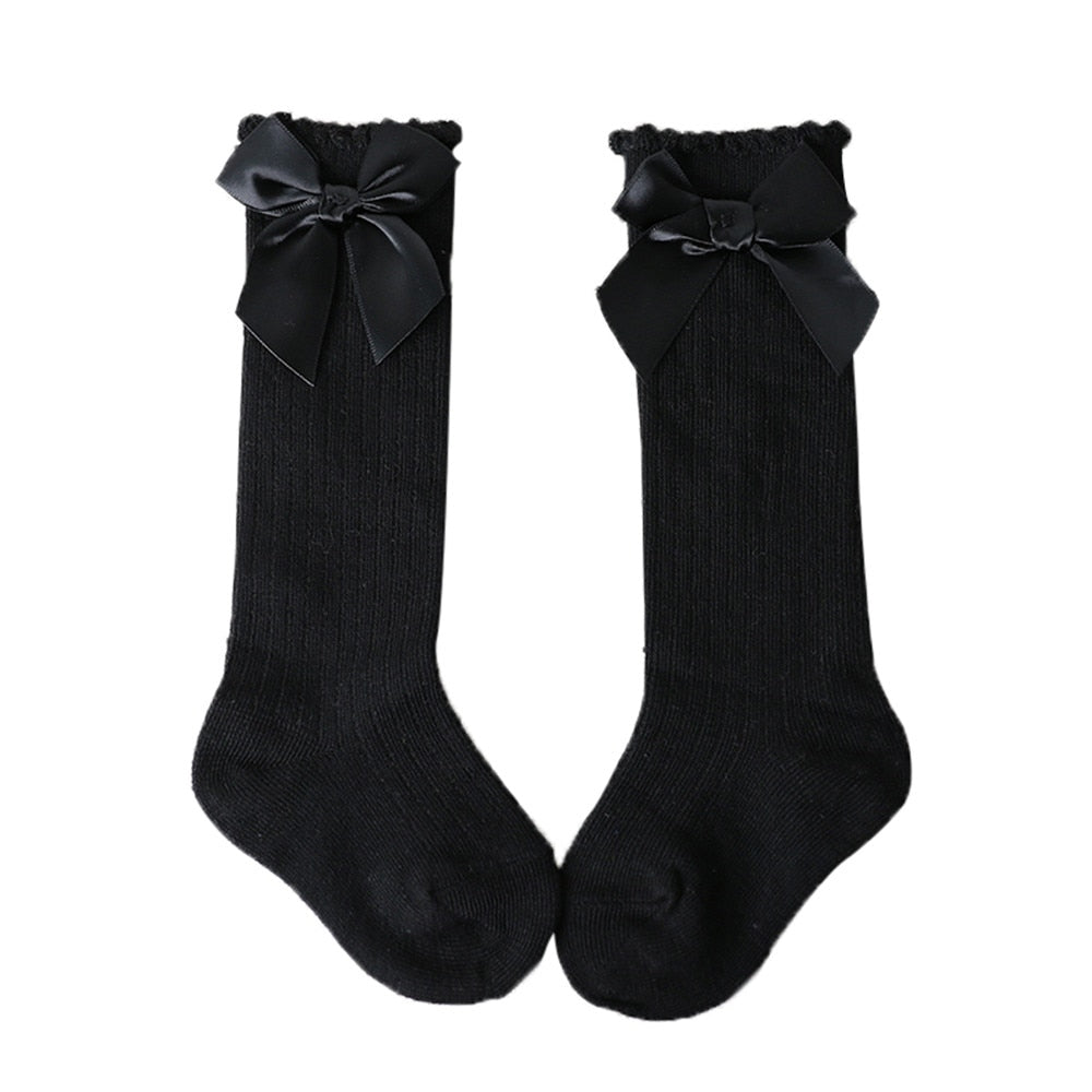 Knee-high socks for girls. Socks with delicate and simple designs with classic smooth velvet bow tie cotton material give your baby more momentum. Many colors for moms to choose from for their babies. The knee-high collar is breathable and absorbent to keep your baby's feet dry.