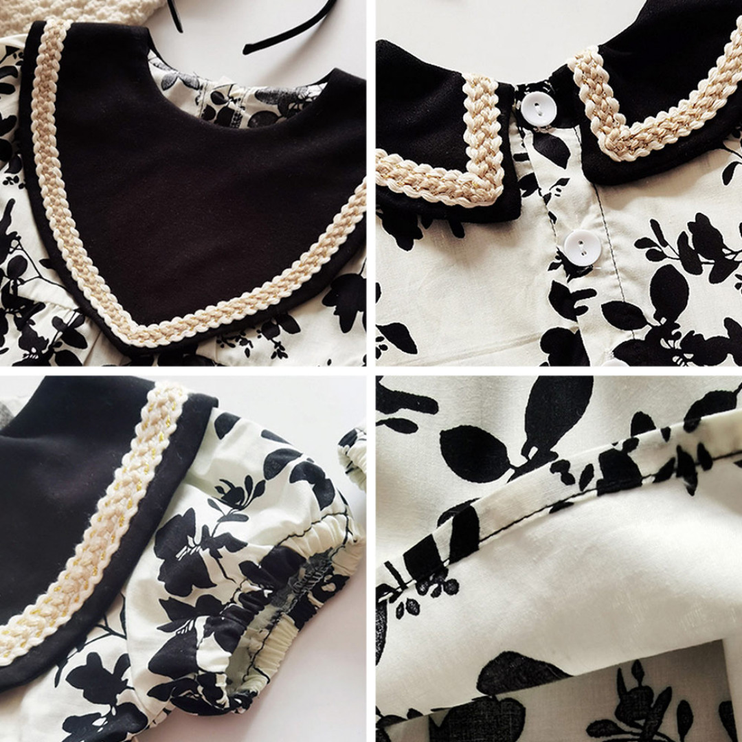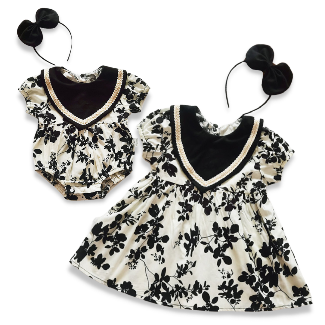 This Baby Collar Black Leafy Prints Siblings Matching Outfit is an undeniably attractive classy matching outfit for your adorable girls! Let your princesses deepen their sisterly love as they both adore the cuteness of these fashion outfits together!