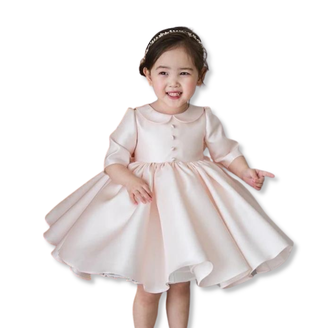 Baby Collar Long Sleeves Fashion Christening Silk Dress