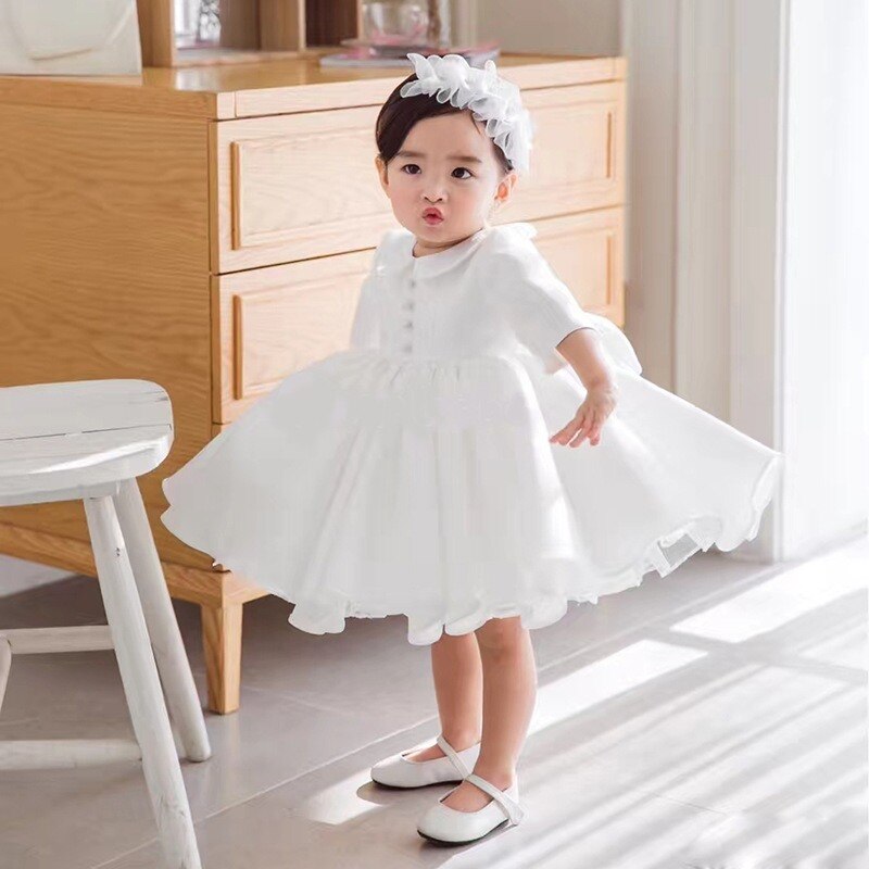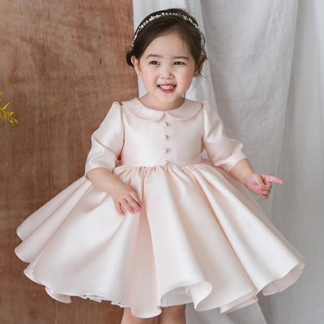 This Baby Collar Long Sleeves Fashion Christening Silk Dress is extremely cute and elegant for little girls. This is cool, relaxed, and comfortable silk dress is exactly what your princess wants to wear every day!