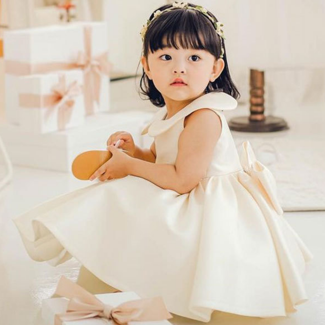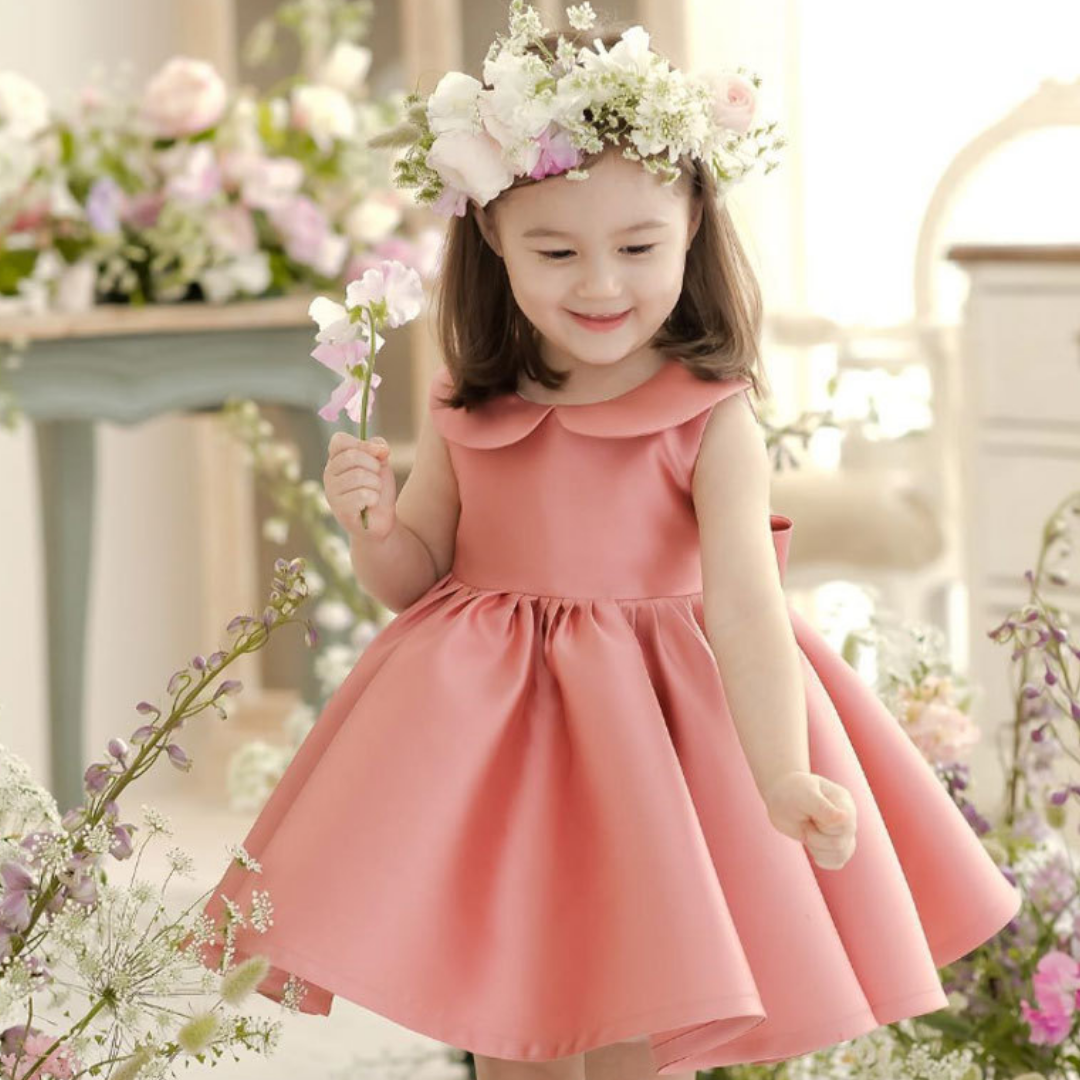 This Baby Collar Sleeveless Fashion Elegant Silk Dress is a beautiful dress for girls. It looks very delicate and elegant. This beautiful dress is specially designed for girls and it is made of high-quality fabric which has excellent wear-resistance, softness, comfortable feel, no fading, and it comes with a zippered closure on the back.