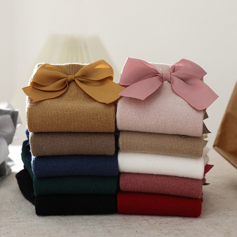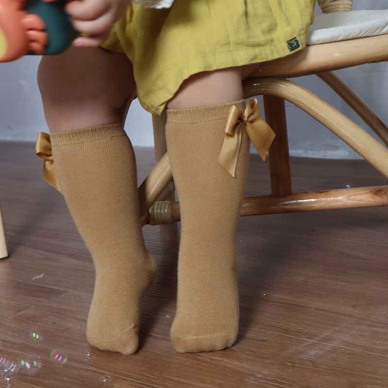 Anti-slip Spanish elastic long-neck socks for girls with Spanish style. An indispensable accessory for babies. With these cute bow-tie turtleneck socks for your baby to wear with a bodysuit or a dress to go out - taking beautiful pictures is always a great choice for mothers.