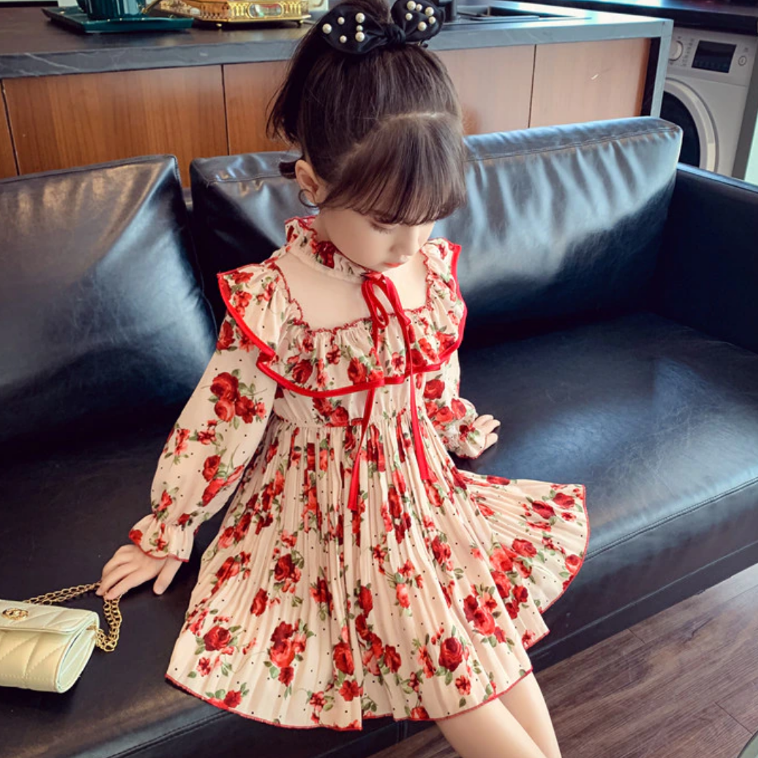 This Back Sailor Turtle Neck Collar Floral Design Girl Dress is easy to wear and comfortable enough for any occasion. The best part about this dress is that it is unique, stylish, comfortable to wear, and soft to the skin. This stylish girl dress is perfect for any girl from toddler to tweens.