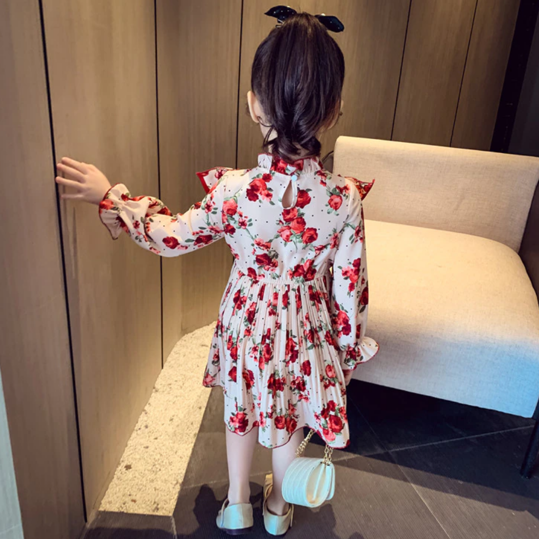 Back Sailor Turtle Neck Collar Floral Design Girl Dress