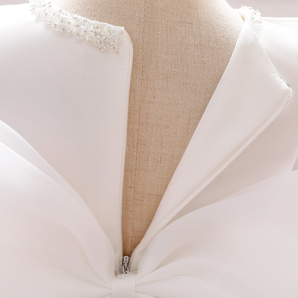 Beaded Neckline and Big Bow Baptismal Princess Ball Gown