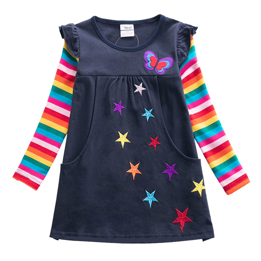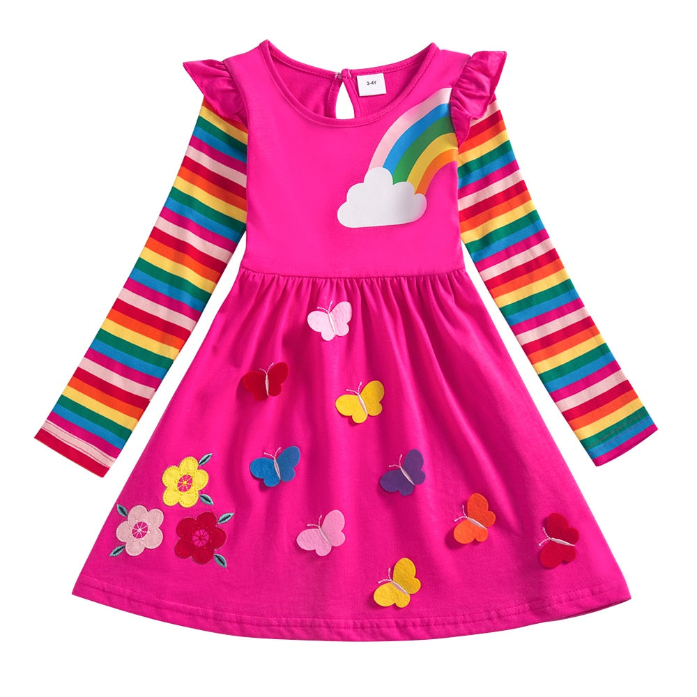 This Rainbows and Butterflies Candy Stripes Long Sleeve Top Dress brings joy and lightens up the mood with its colorful design. No matter what kind of occasion it is, this will be a perfect choice for your girl! Great gift for your lovely daughter!