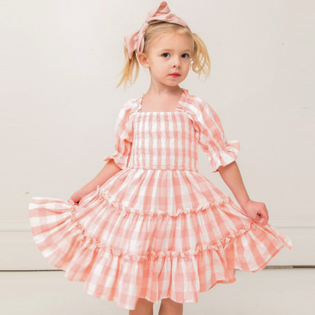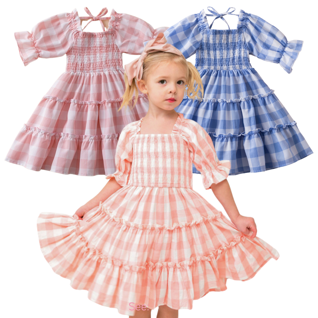 This Checkered Pattern Lantern Sleeves Girls Sundress is a cute and warm dress for girls. These stylish short sleeve dresses are the perfect choice for your lovely little daughter. The fabric is soft and comfortable like satin, which is better for your kid to wear all day long. It's a great gift for birthdays, Christmas, and other special occasions!