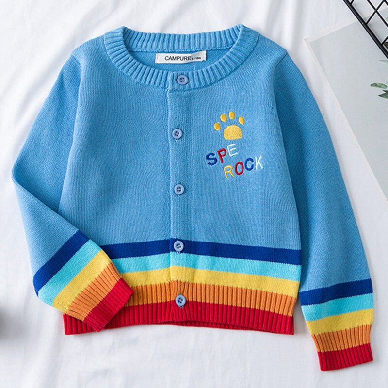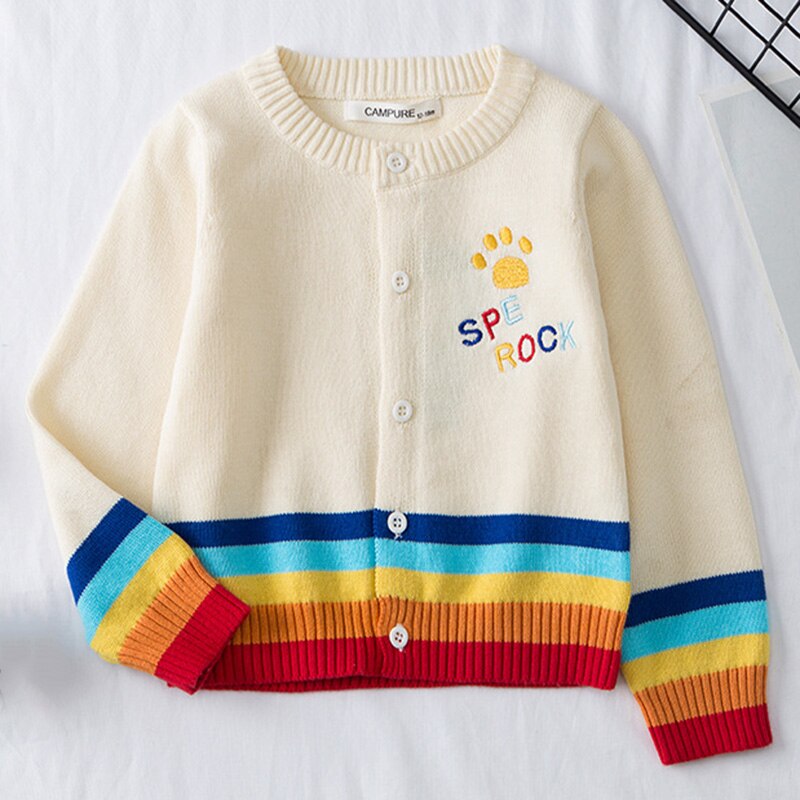This Clouds and Rainbow Print Knitted Cardigan is a trendy knitted sweater for girls, made from soft and good quality material. This sweater has a clouds and rainbow on the front which gives your girl a cool look. The cardigan sweater for girls is available in many sizes and colors.