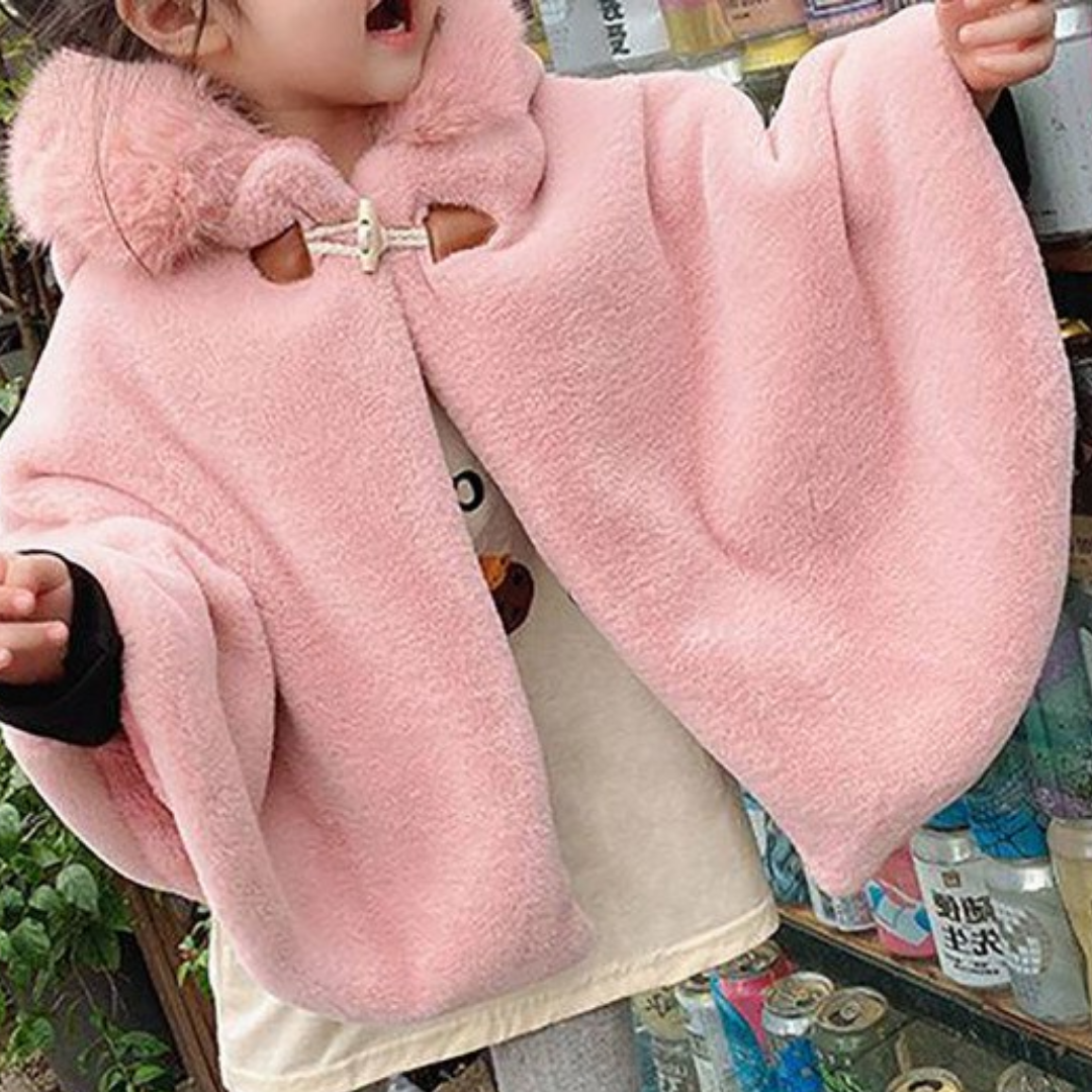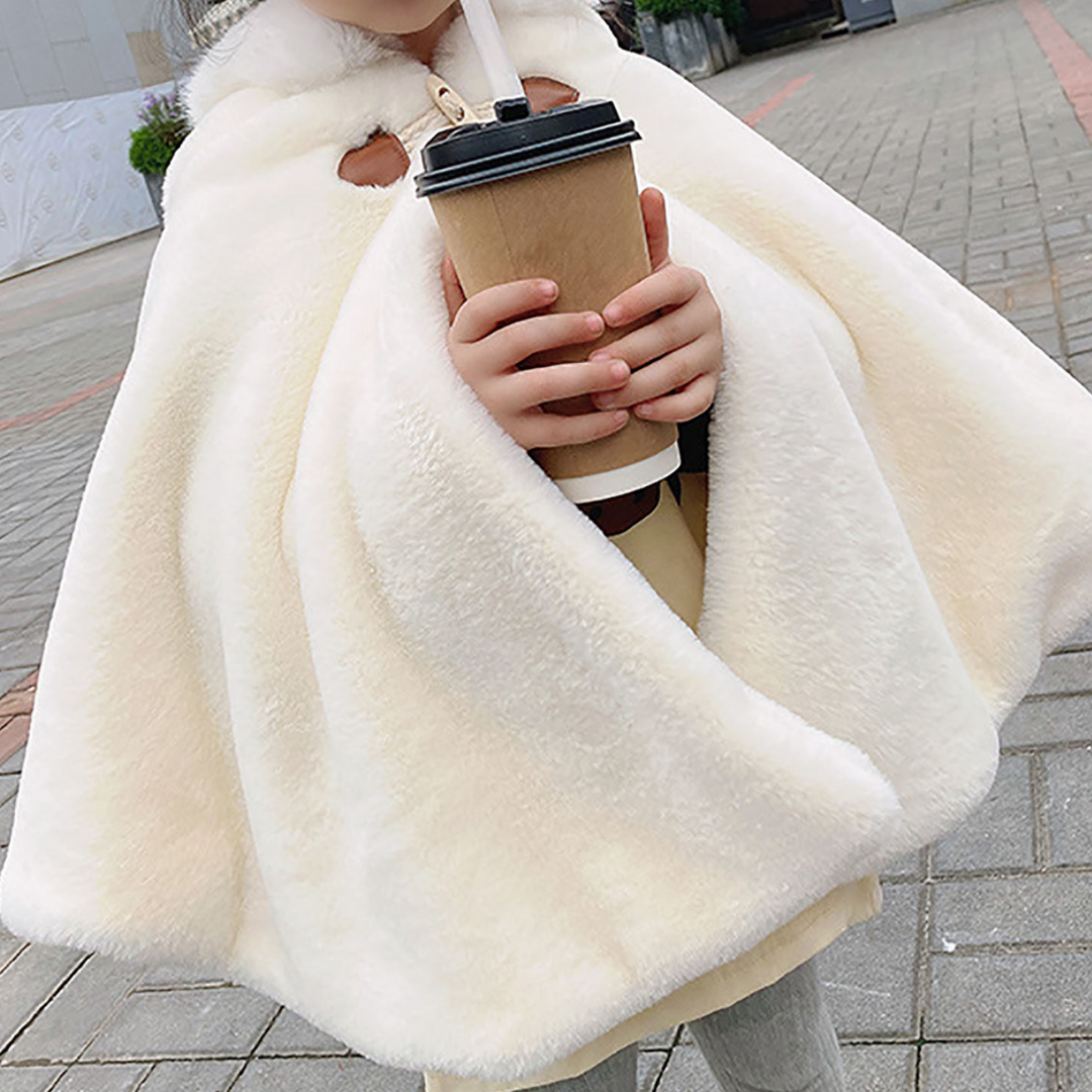 This Faux Fur Collar Hooded Short Cloak is graceful and elegant. This coat is made of soft fabric with fur lining on the hood. It is a great addition to your little girl's winter wardrobe.