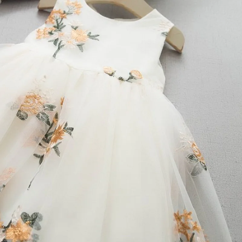 This Floral Embroidered Pattern Sleeveless Princess Casual Dress can be worn in all seasons. The beautiful floral embroidery design gives that elegant fashion look. The material is soft and very comfortable for your baby.