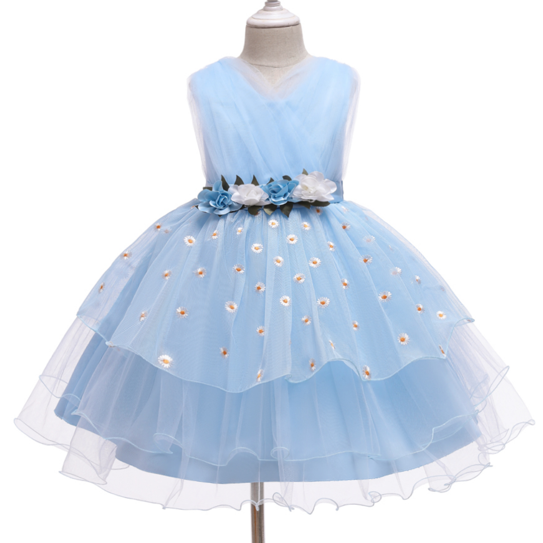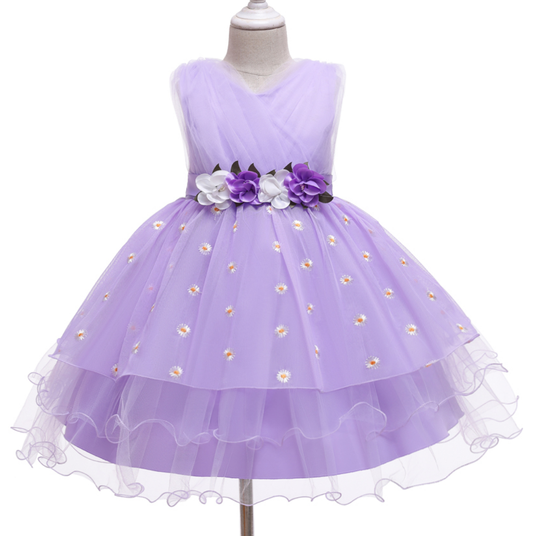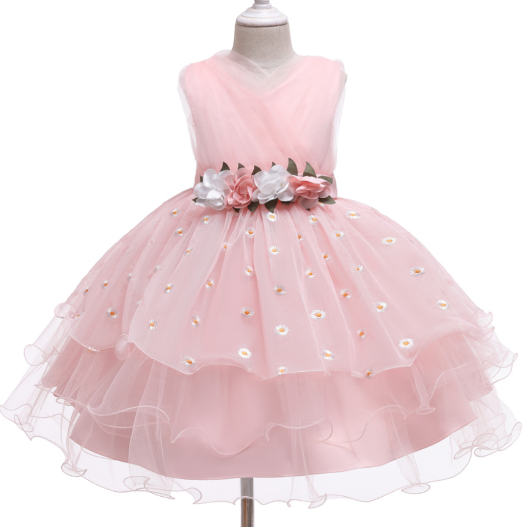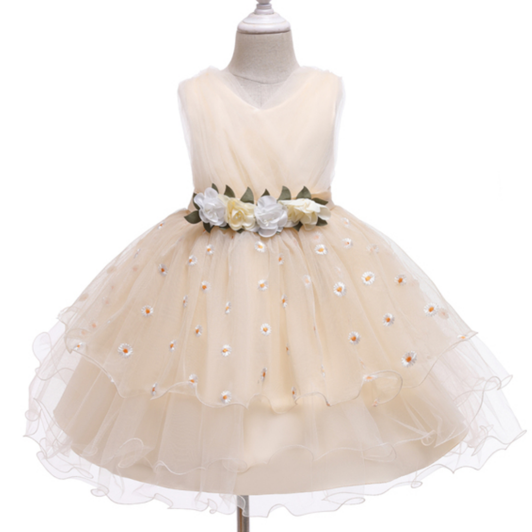 Floral Embroidery Layered Mesh Wedding Flower Girl Dress