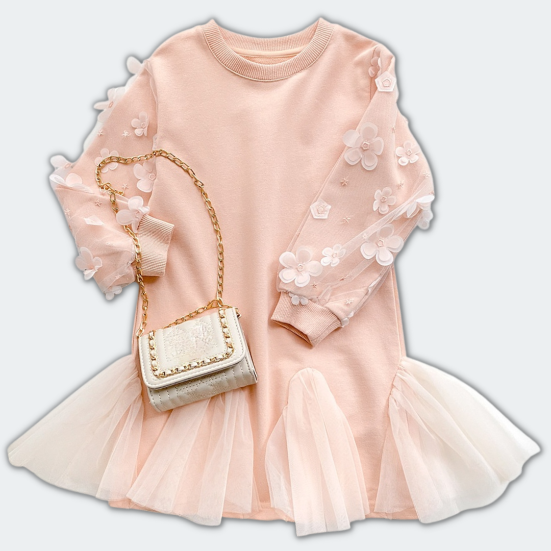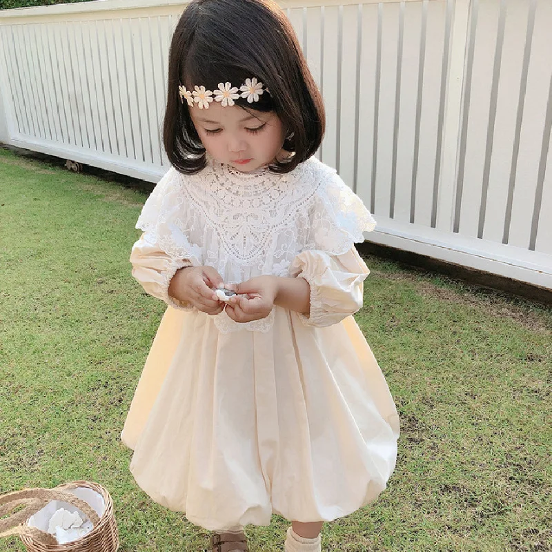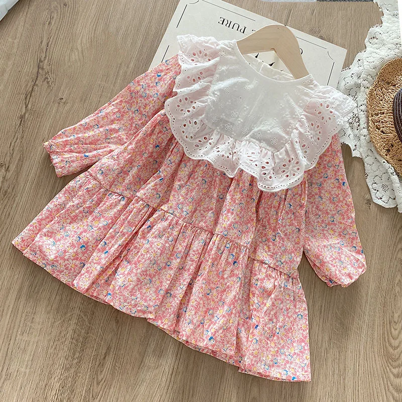 Floral Patch Lace Design Girls Long Sleeves Fashion Dress