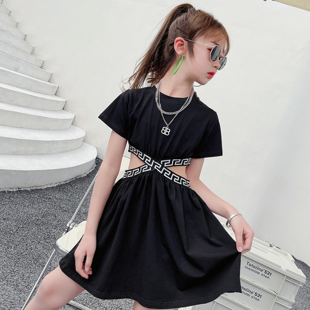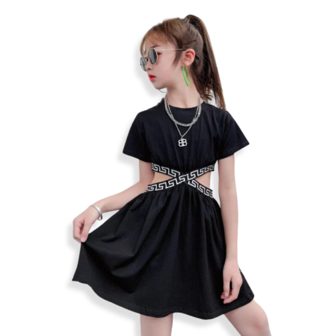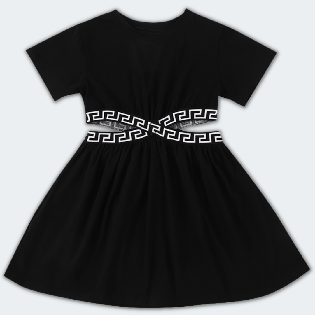 Geometric Design Hollow Waist Girls Sporty Casual Dress