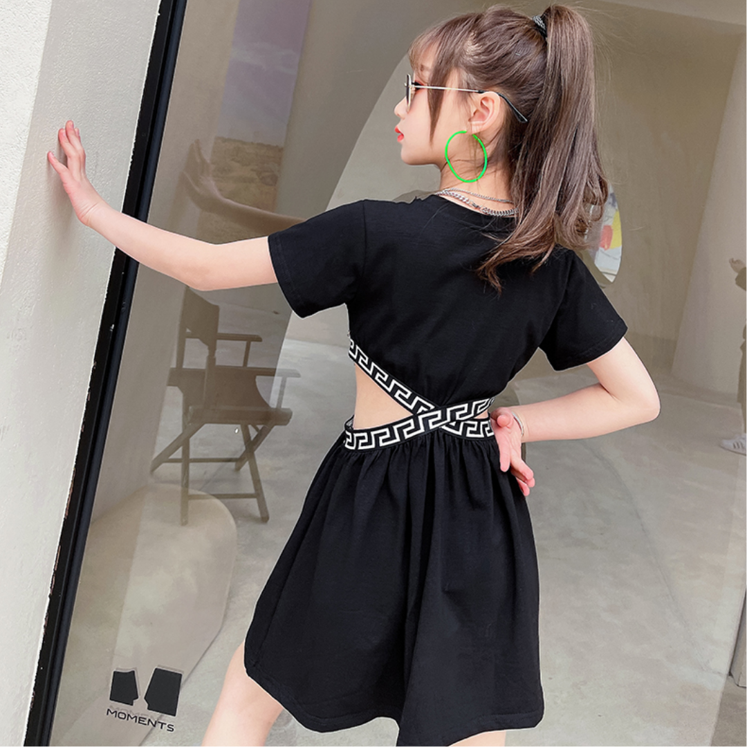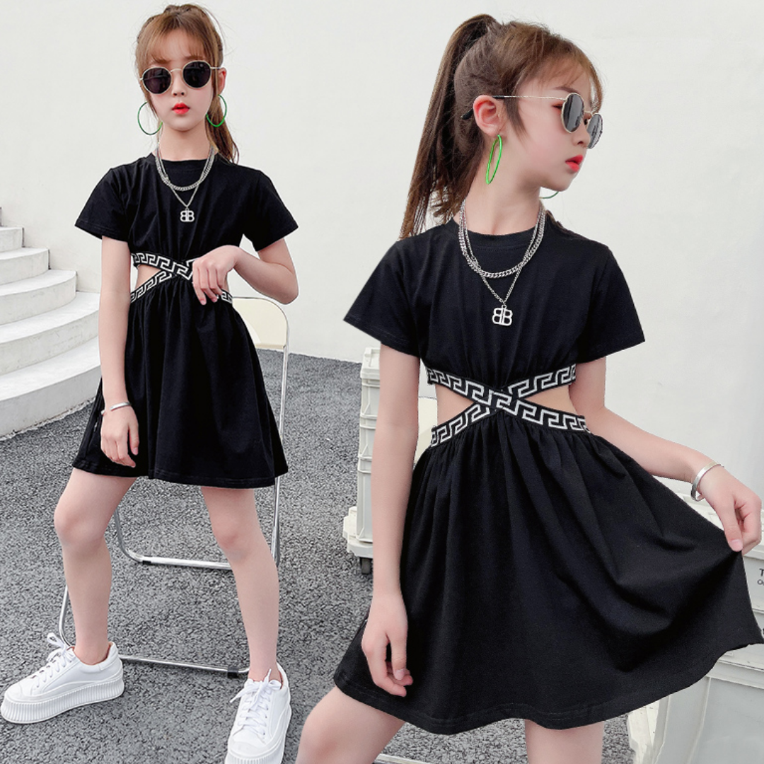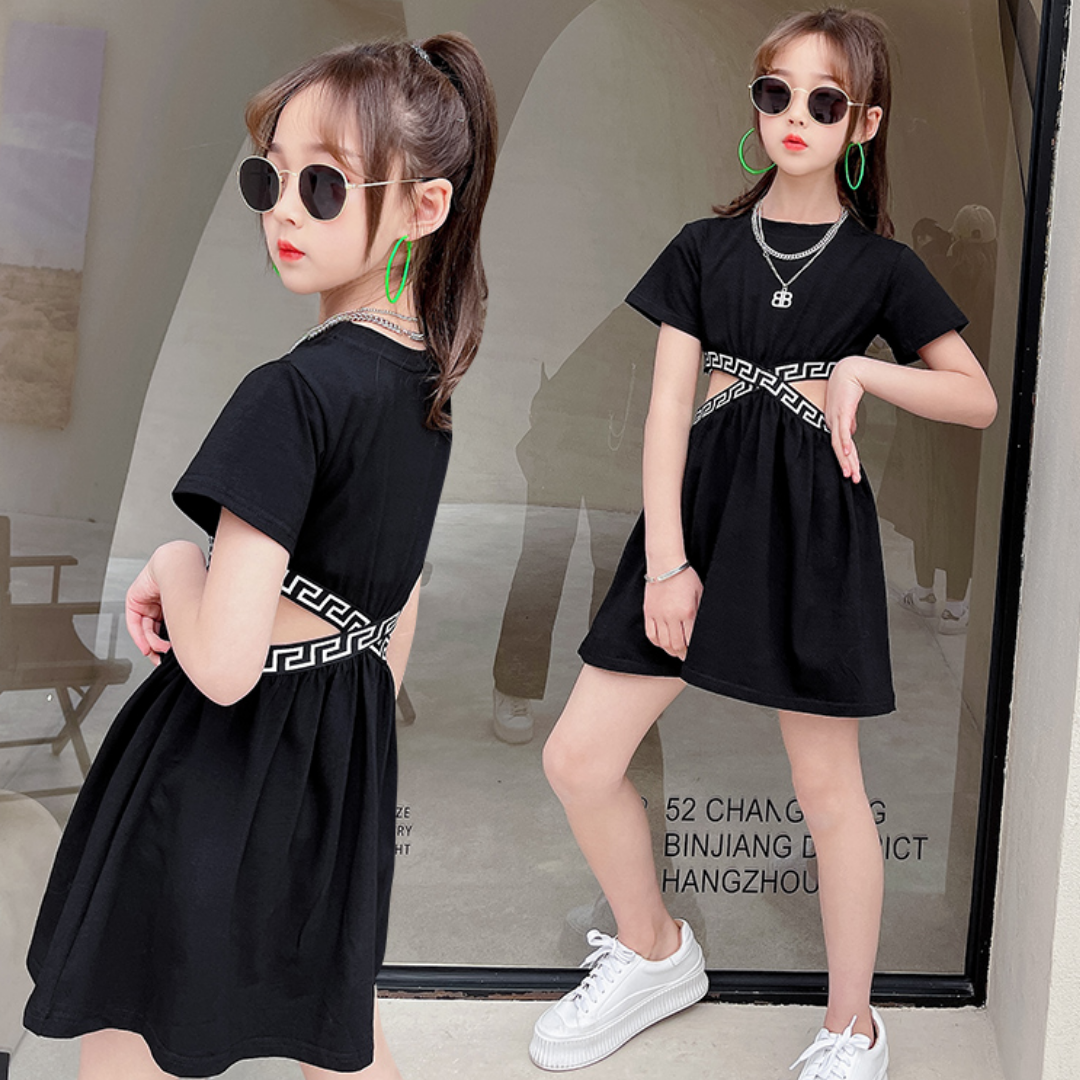 Geometric Design Hollow Waist Girls Sporty Casual Dress