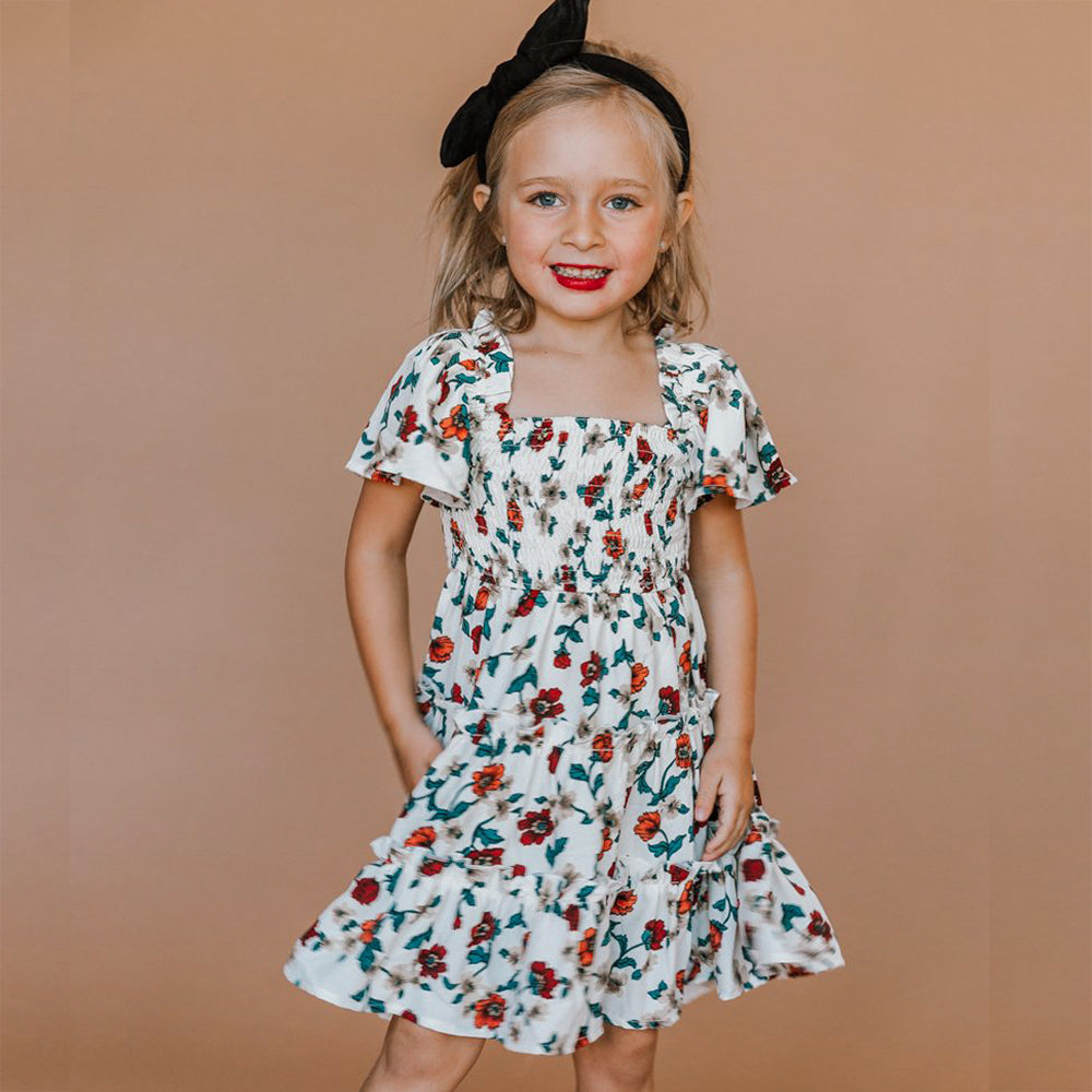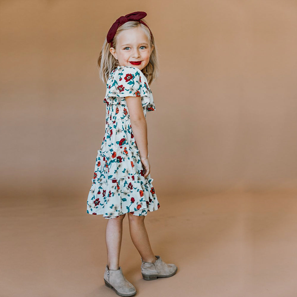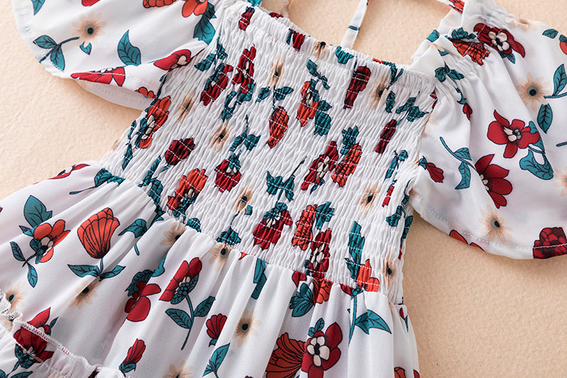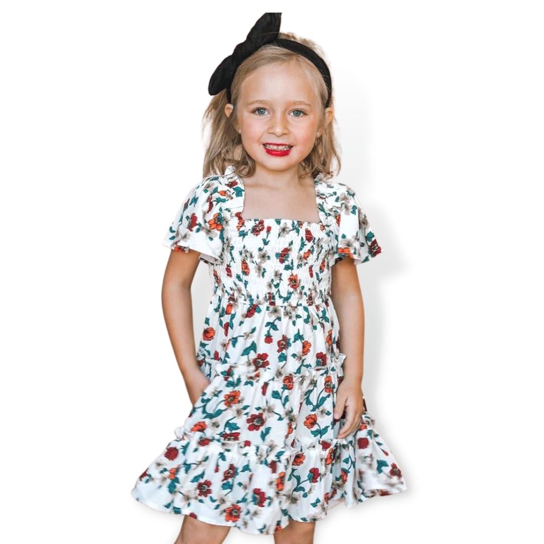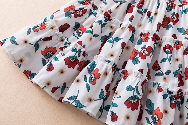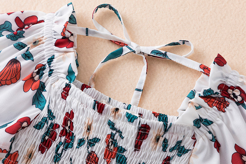 Girls Summer Red Floral Short Sleeve Casual Dress