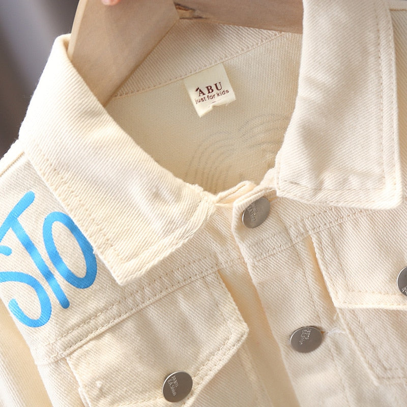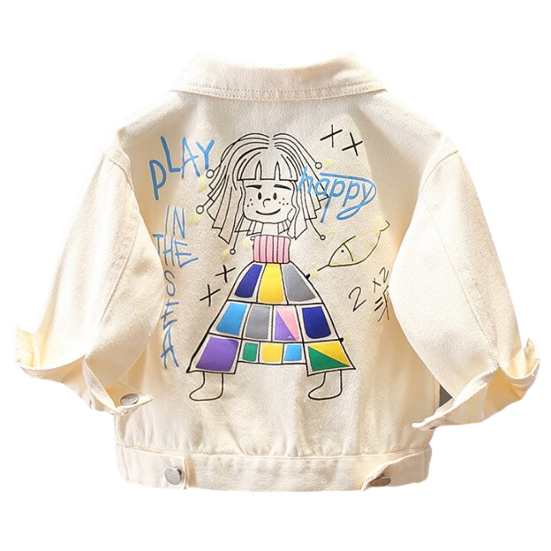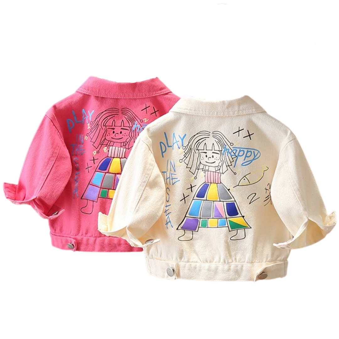 This Happy Girl Graffiti Print Denim Jacket is adored by its unique design and comfortable fabric material. This jacket will give your little one an amazing look and at the same time, it is comfortable and easy to wear.