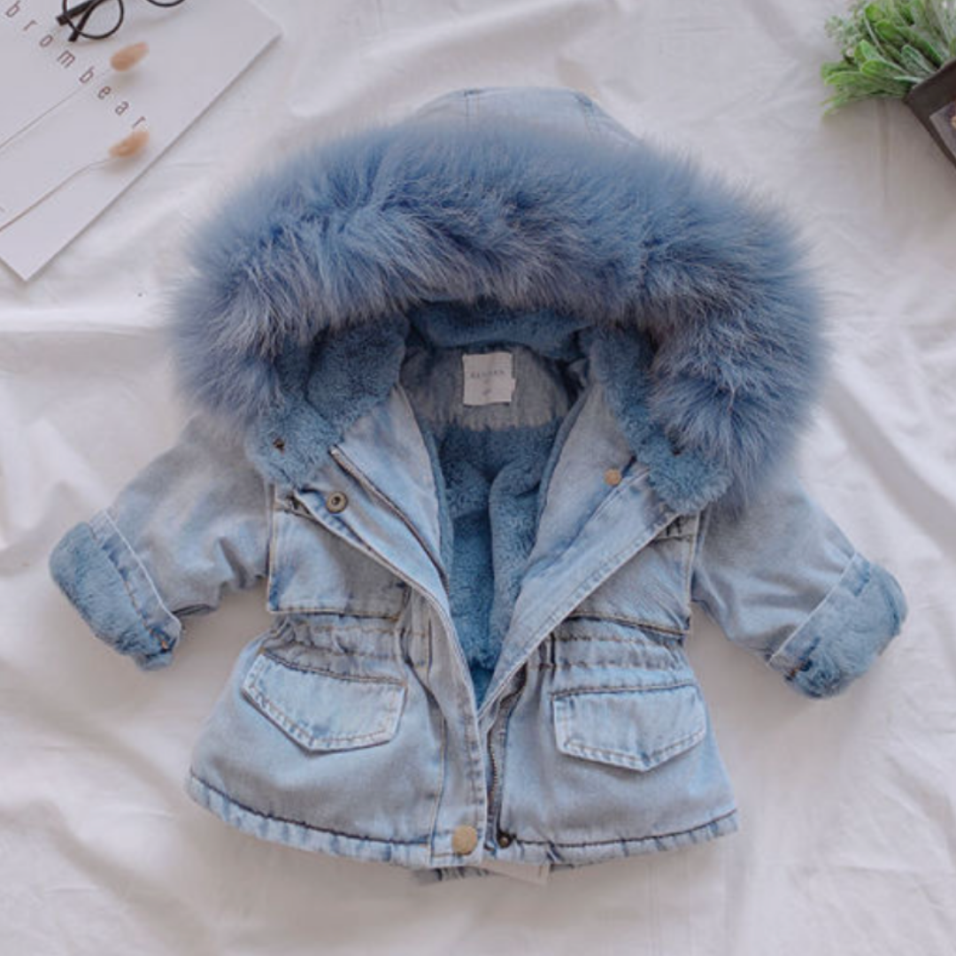 Winter is one of the best seasons to be stylish and also fashionable. Make your little girls be as fashionably stylish while being protected from the cold with this Hooded Fur Denim Jacket.