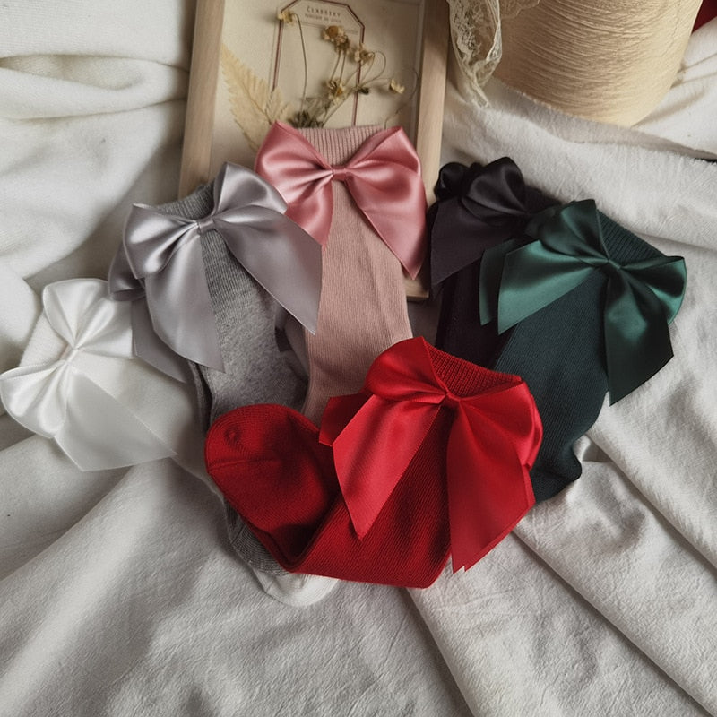 - Adorable Style: Solid color knee-high socks and velvet bow to match any baby's outfit great. Soft texture, delicate design, perfect fit for photo sessions.