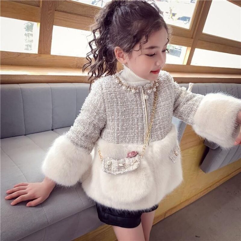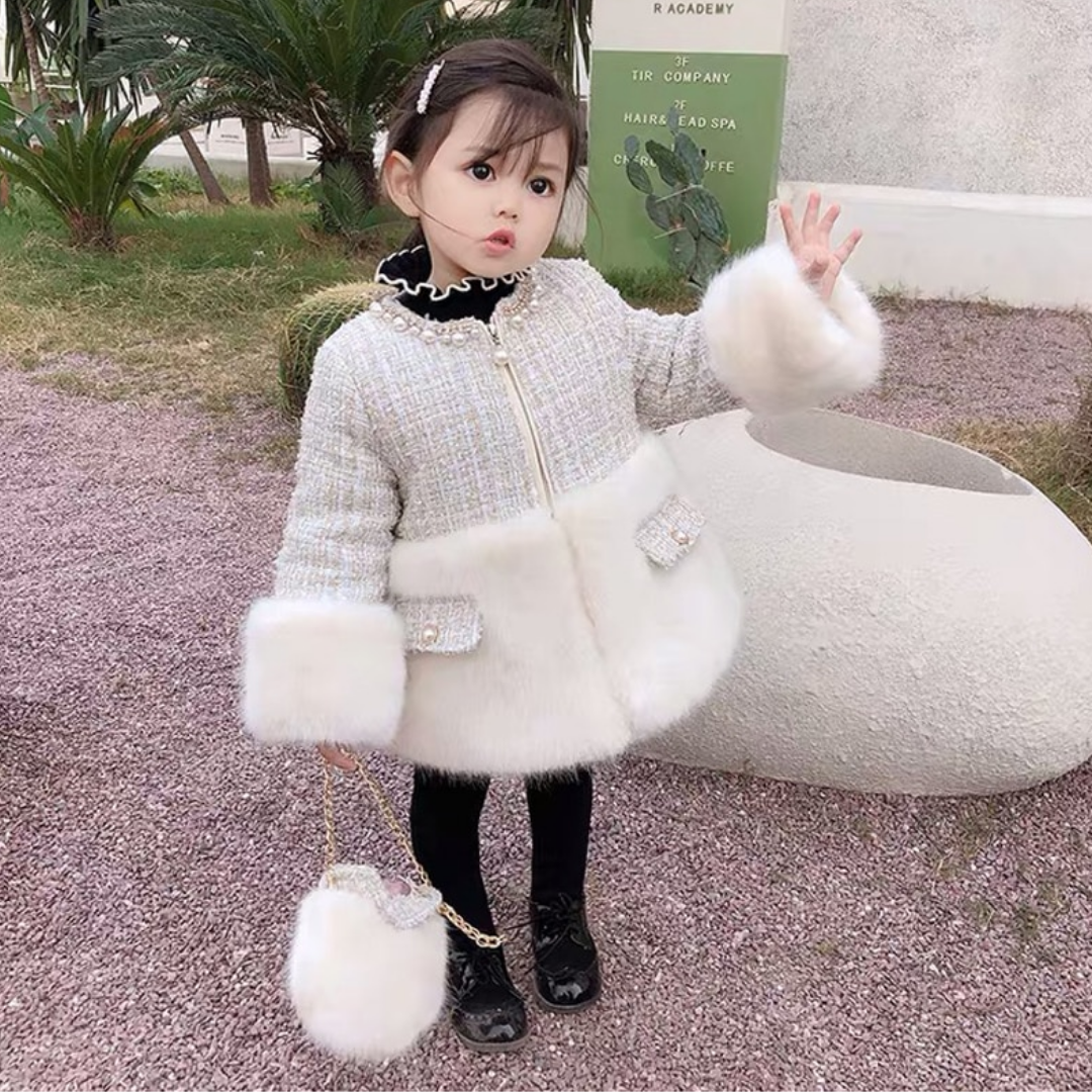 This Padded Plaid Fur Coat with Bag is a good choice for your little girl's winter fashion wear! The fur design with thick plush lining gives your girl a warm feeling, and the details of the plaid design make it picture-perfect wear for your princess in the cold weather!
