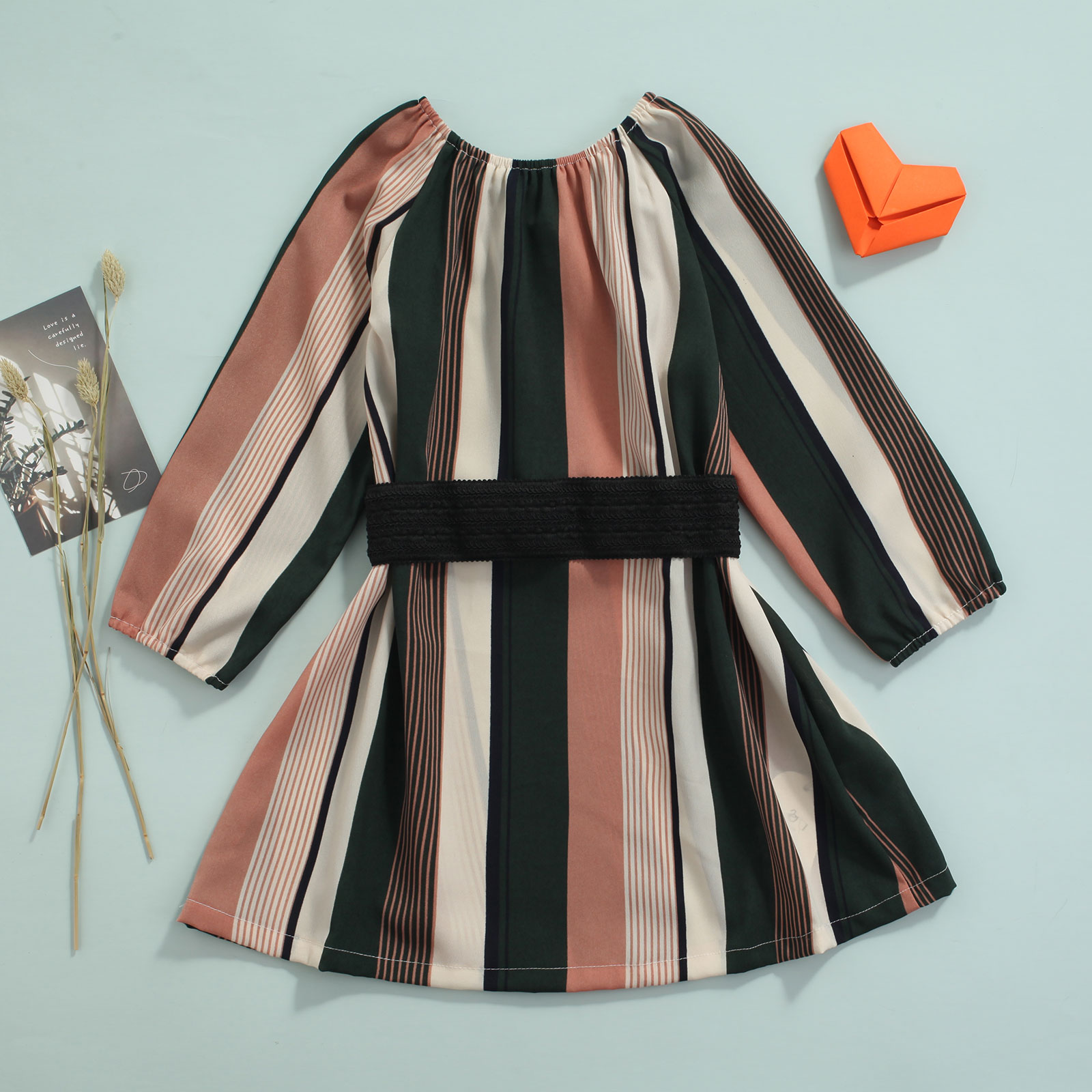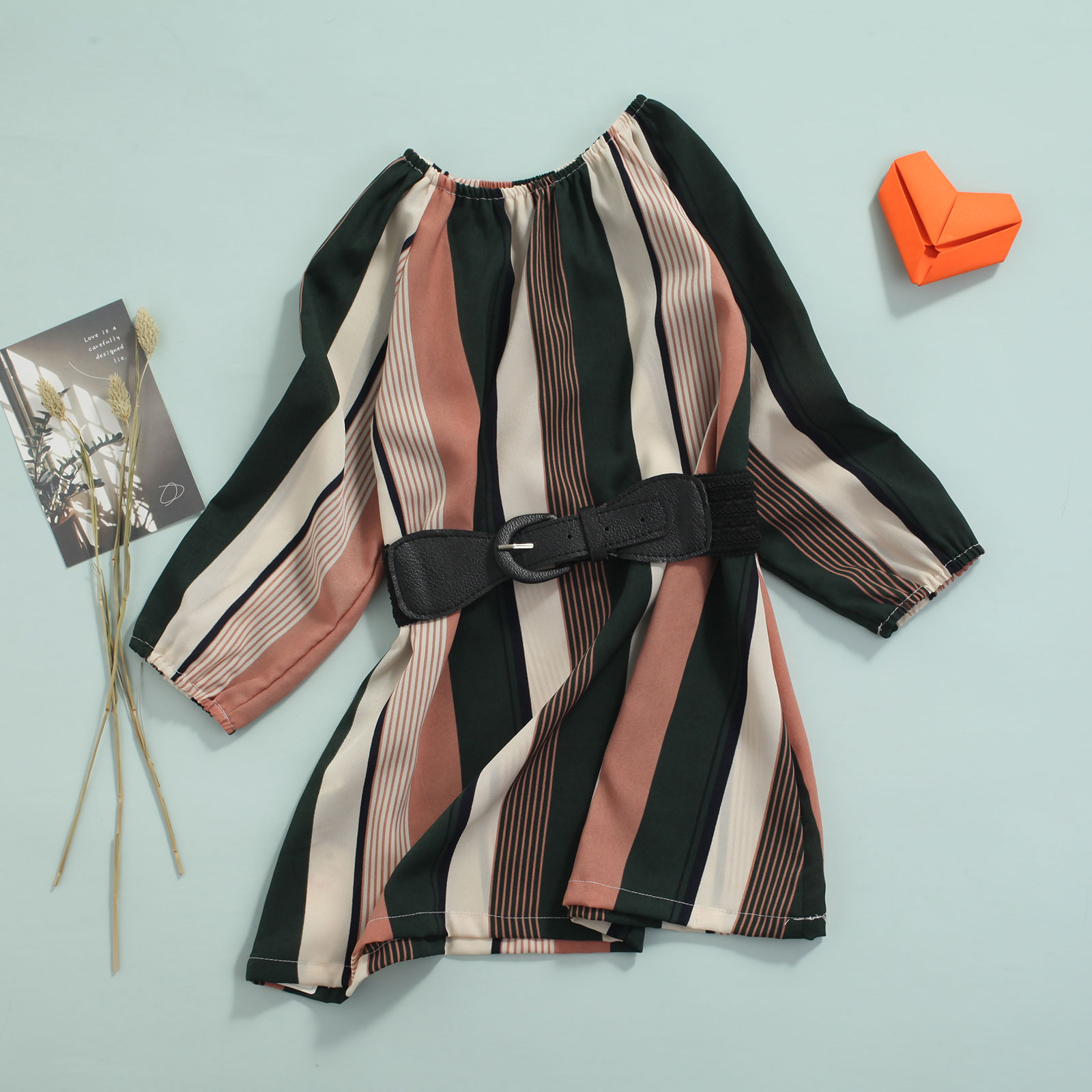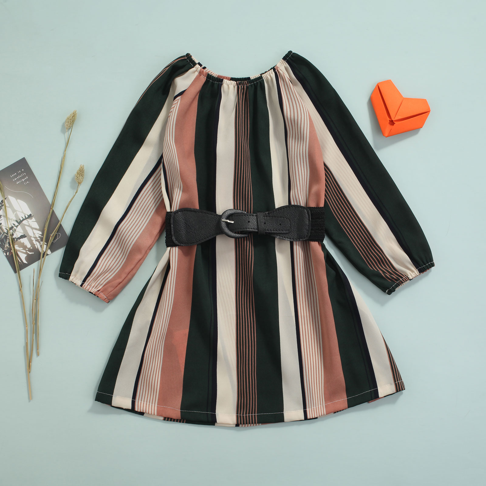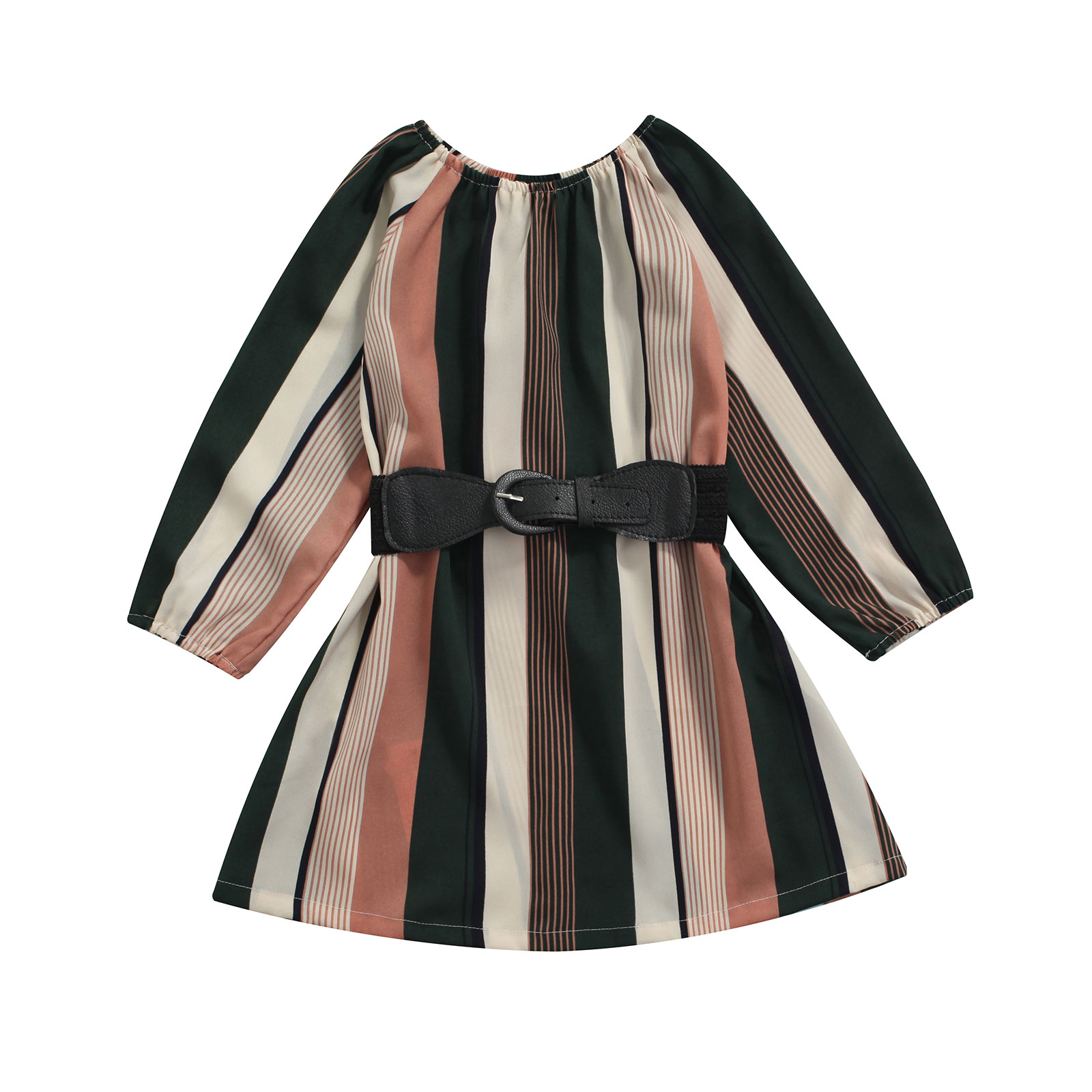 Pattern Design Long Sleeves Girls Fashion Dress with Belt
