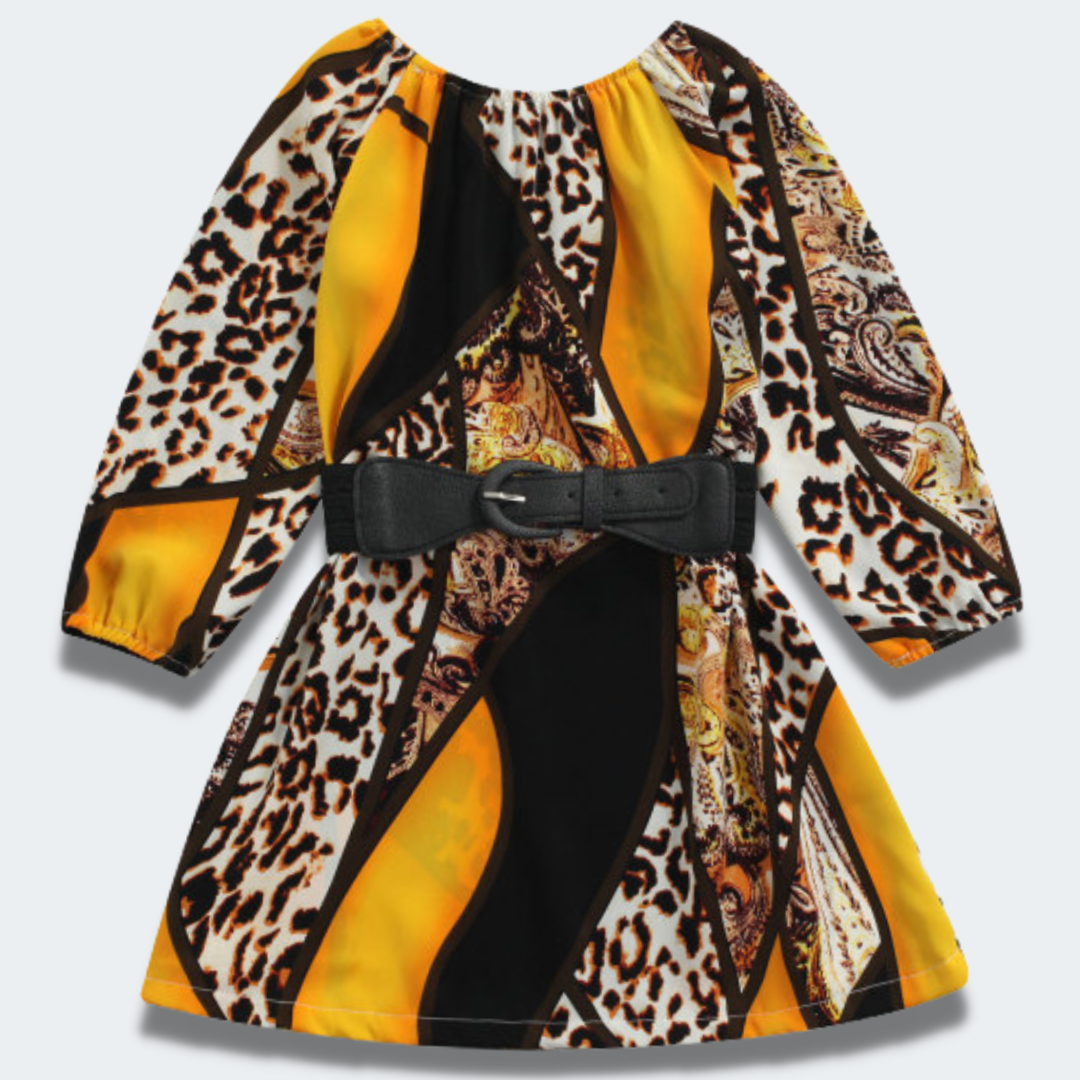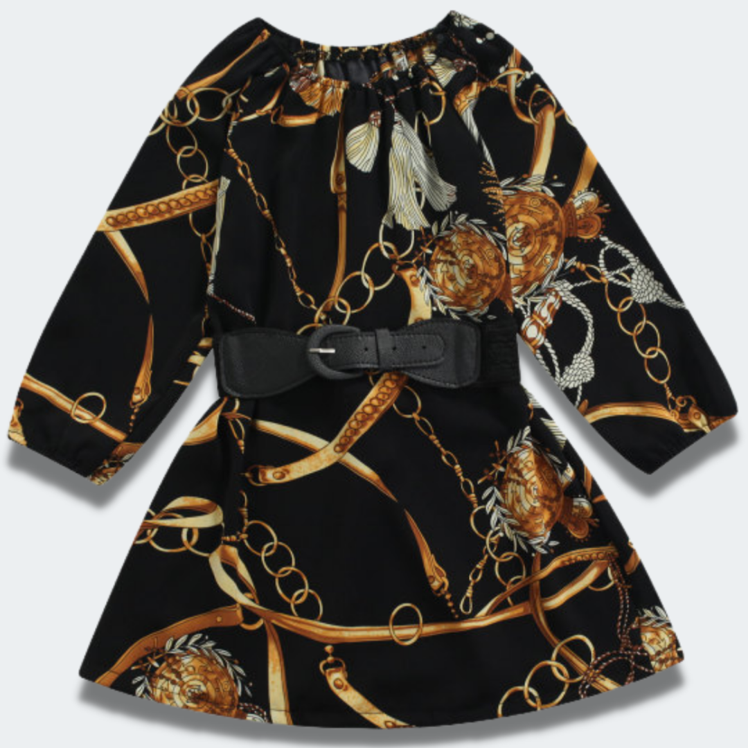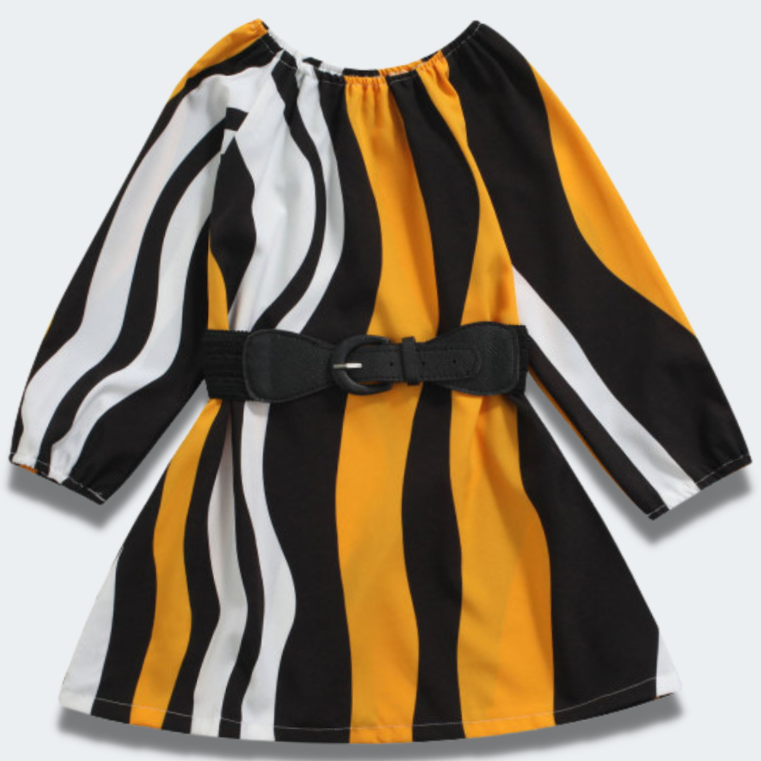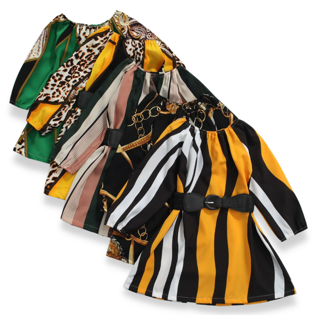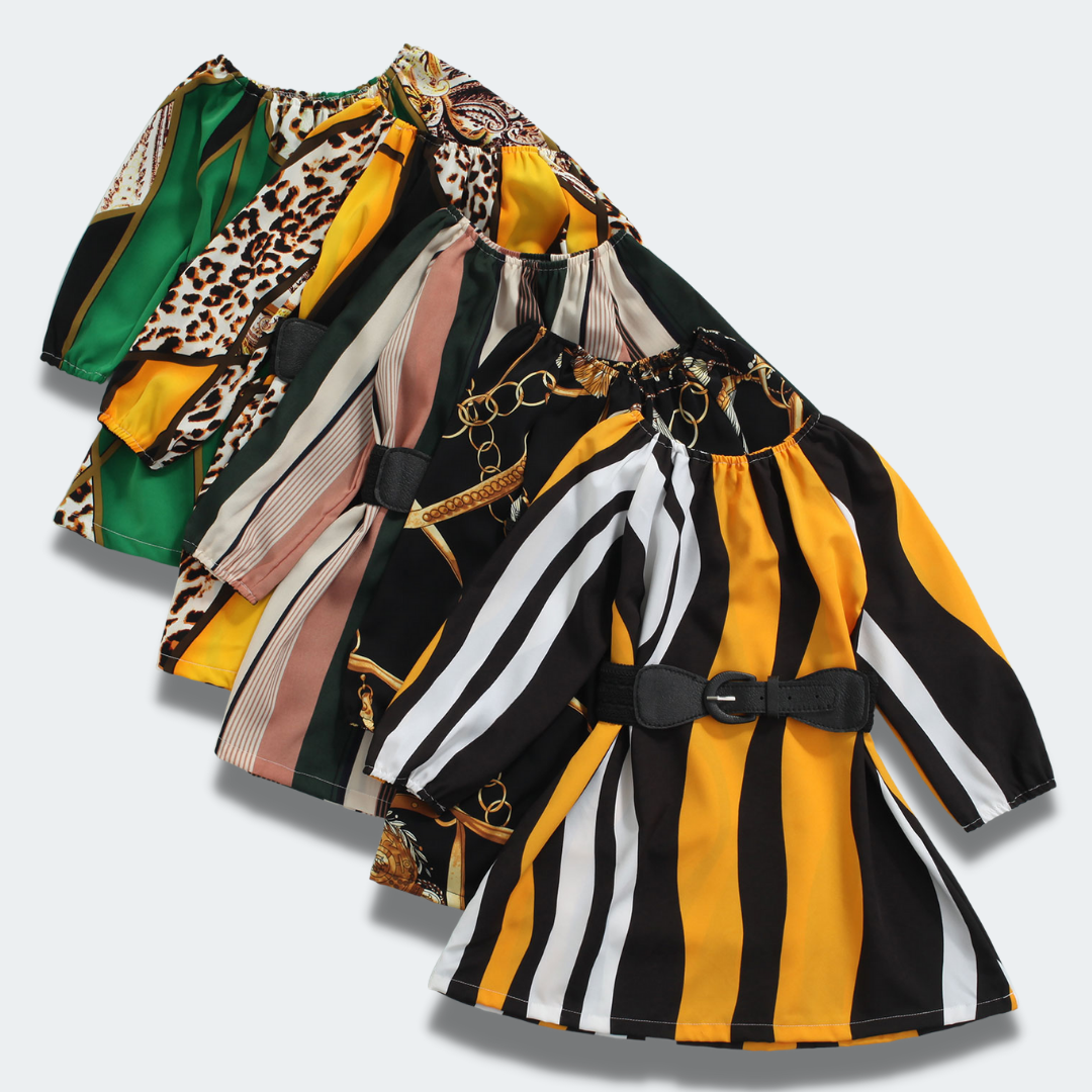 This Pattern Design Long Sleeves Girls Fashion Dress with Belt is trendy for kids, the best gift for your adorable little princess. It is made of high-quality fabrics, very soft comfortable, and will bring a lot of convenience to your girls.