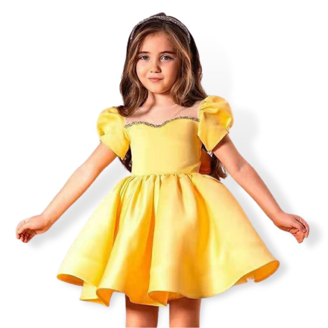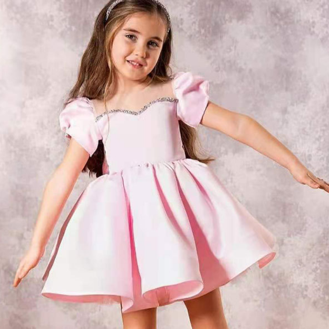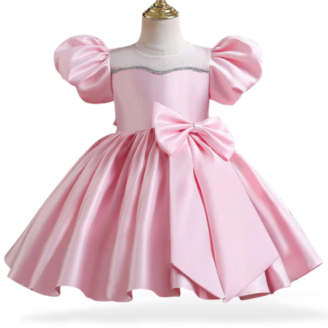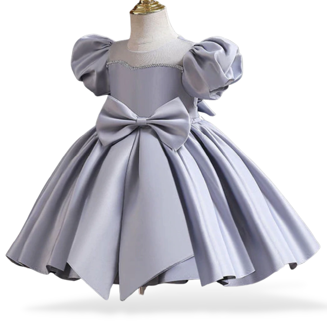 Get your little girl's outfit up to date with this Puff Sleeves and Ribbon Bow Design Wedding Flower Girl Dress. The dress is fluffy and impressive to get adored and turn heads in the crowds!
