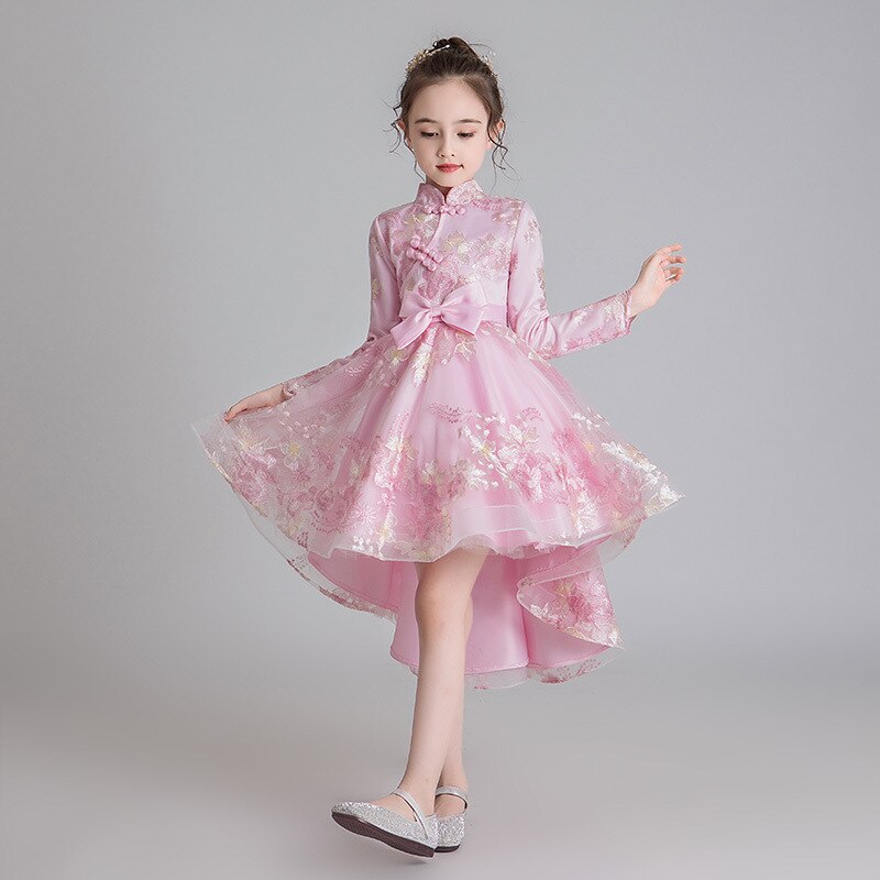 Rose Patch Floral Printed Girls Fashion Party Dress