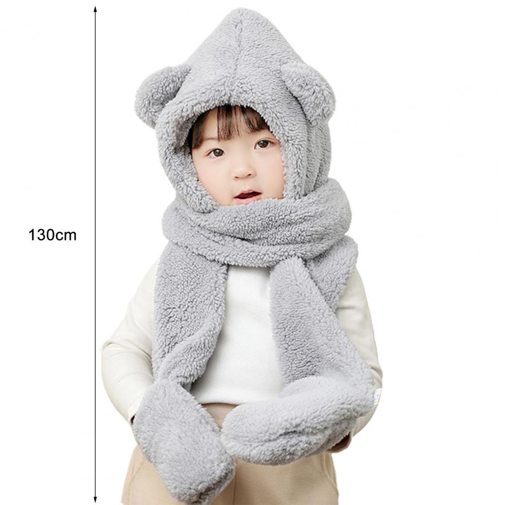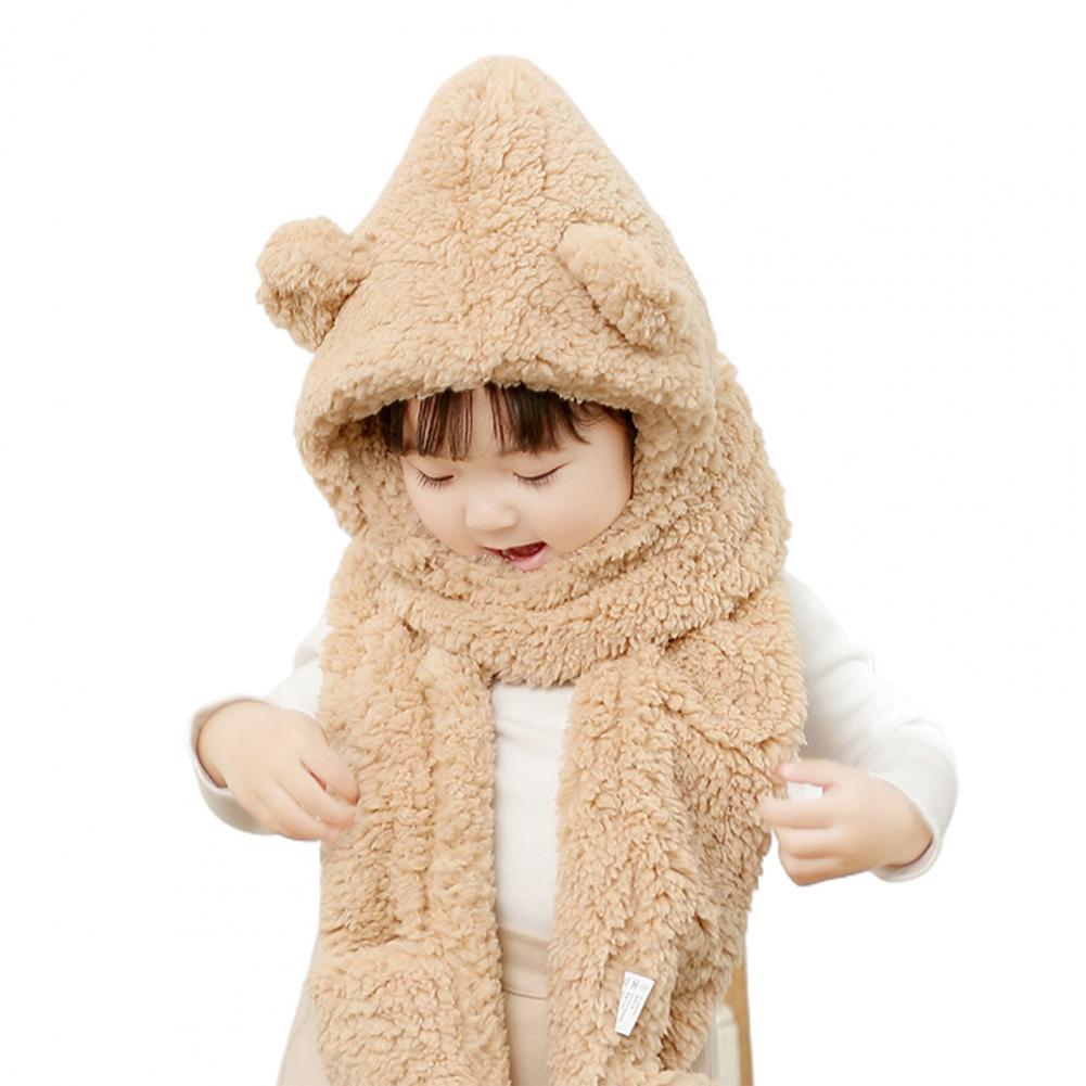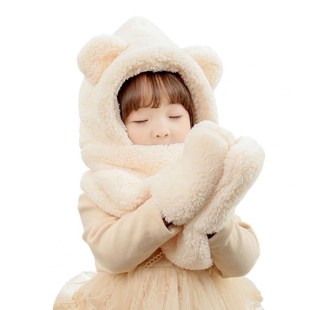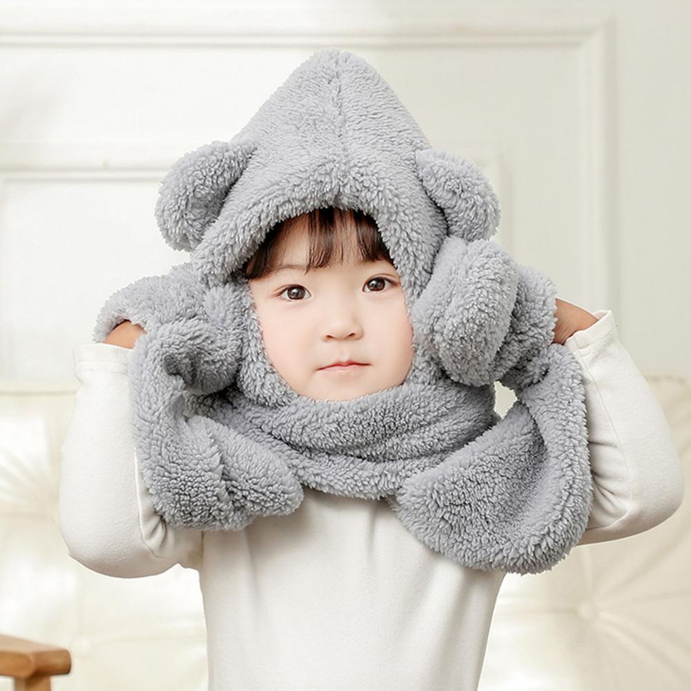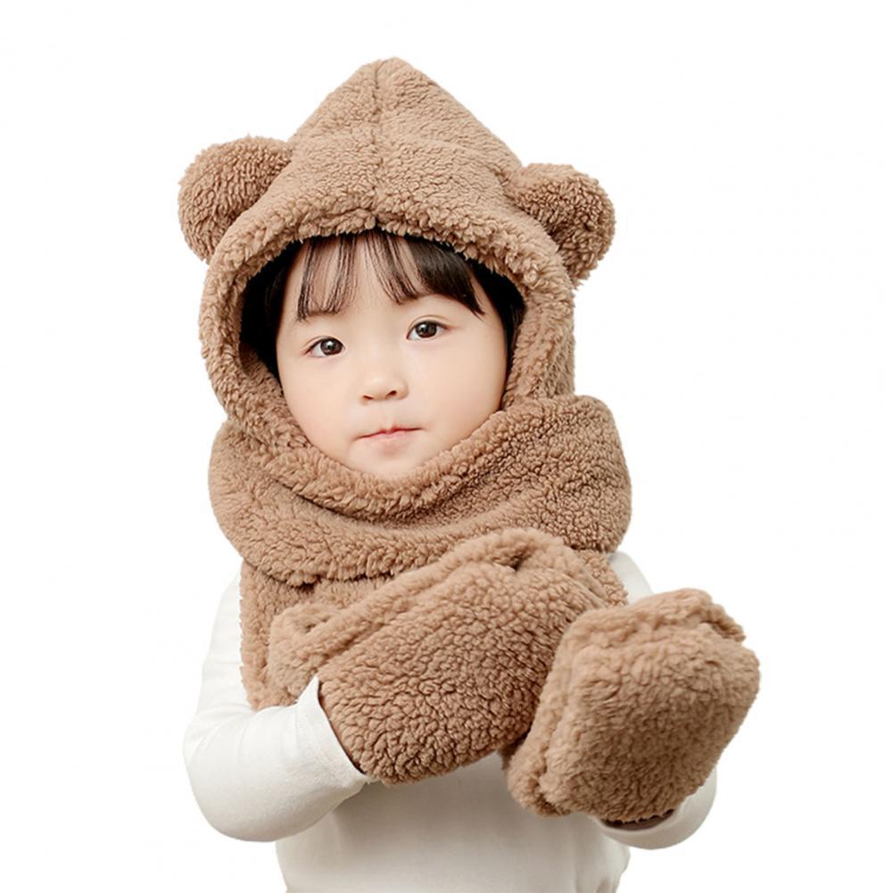 Baby plush one-piece scarf gloves hat adopts cartoon bear ear decor design, it is very beautiful, sweet, and cute, and it makes your kids look more lovely and popular.