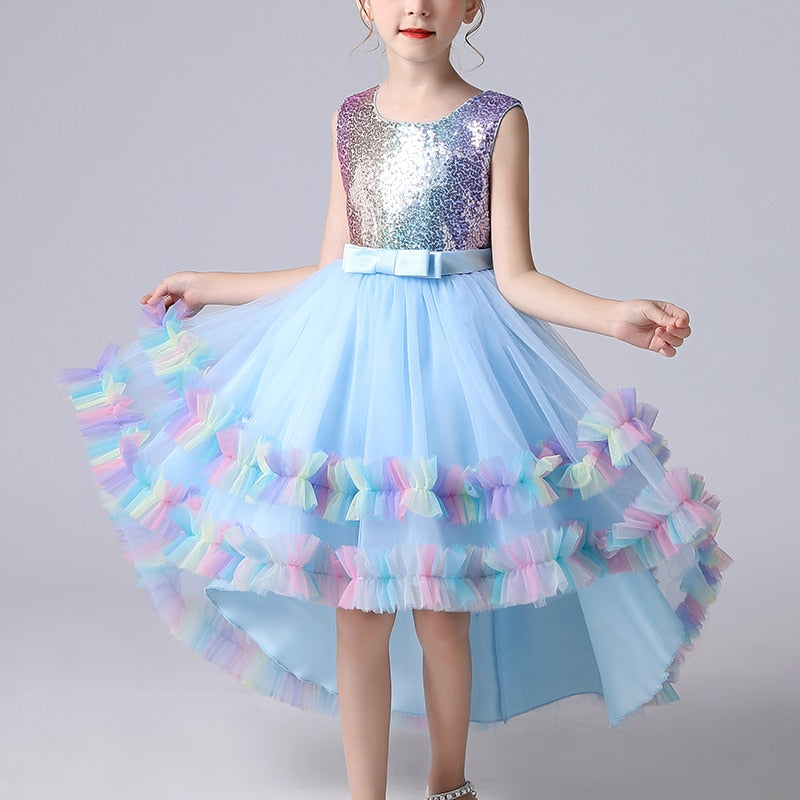 This Shiny Top Candy Color Layered Ruffle Princess Dress is perfect to be worn on many occasions like weddings, formal parties, Sunday dress, and even for your girl's birthday celebration.