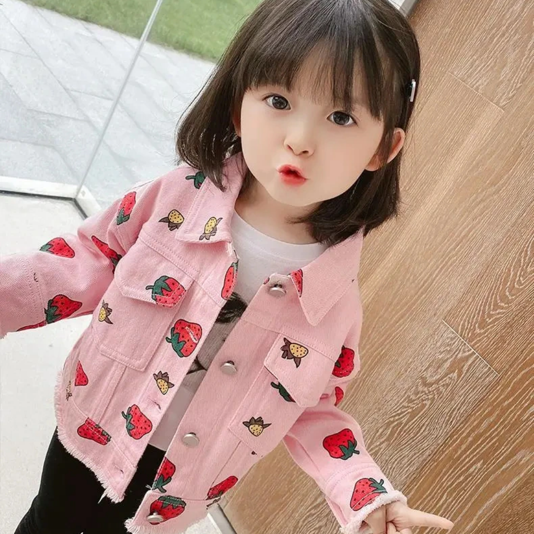This Strawberry Pattern Print Denim Jacket is a super cute coat for your little girl. It will make her look adorable and at the same time very comfortable. The material of the jacket is very soft and warm, which will keep your baby girl at an appropriate temperature in all weather conditions.