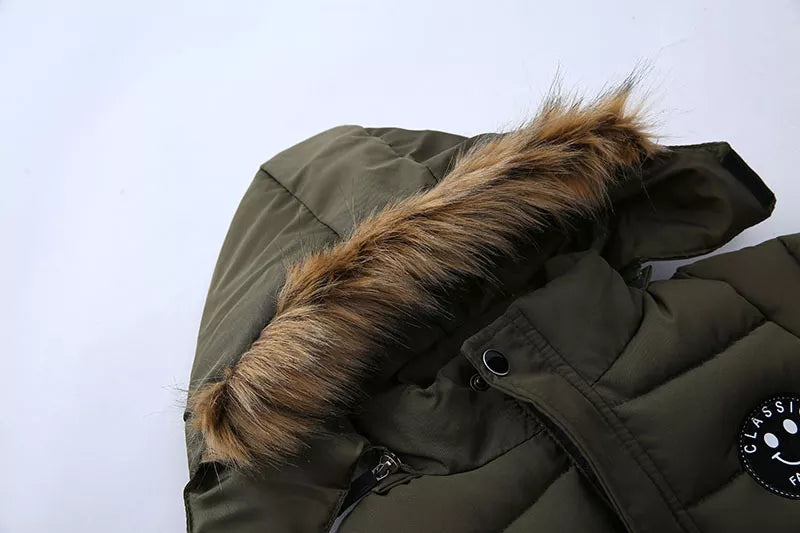 Fur Collar Elegance: The fur collar adds a touch of elegance to the jacket, keeping your child both stylish and snug.
