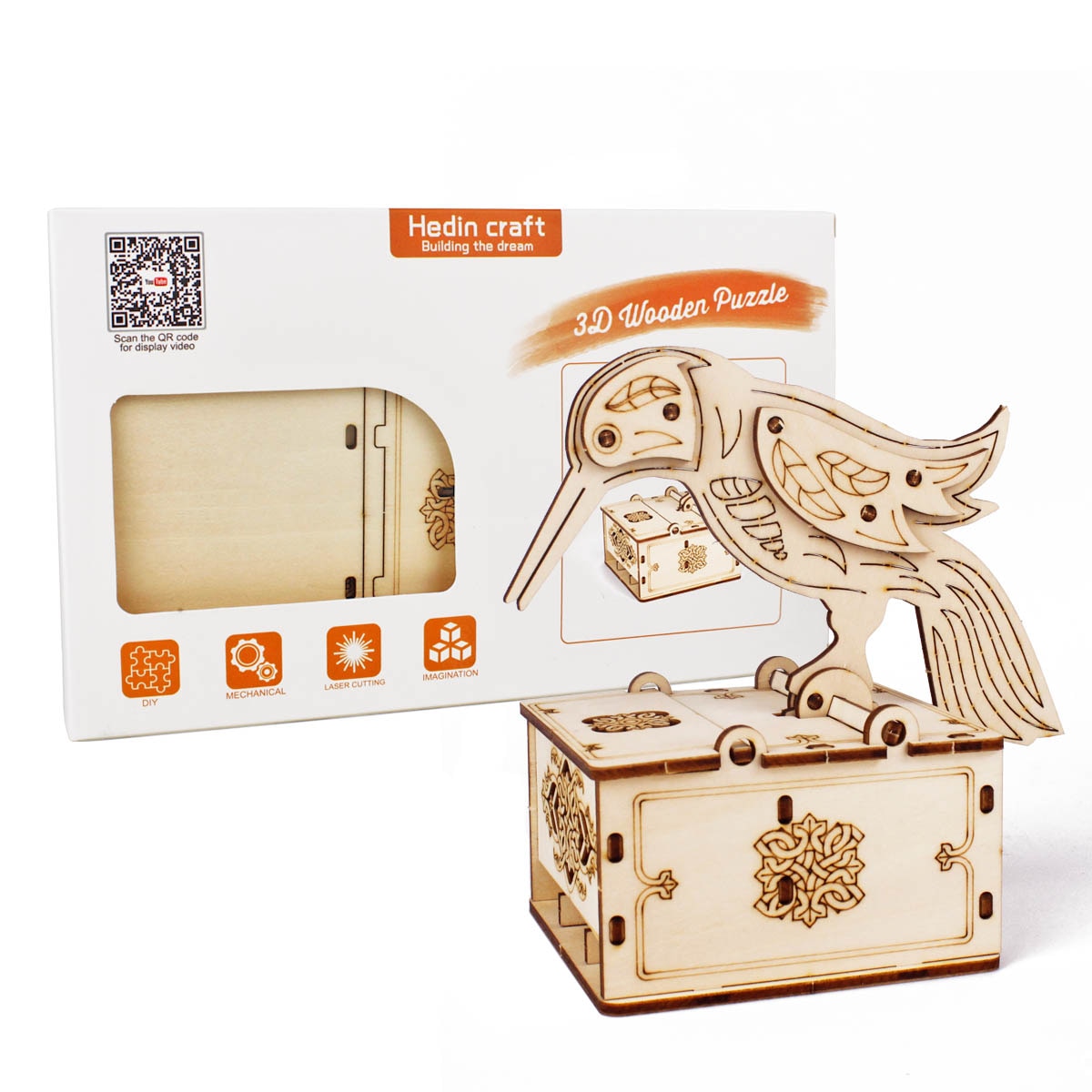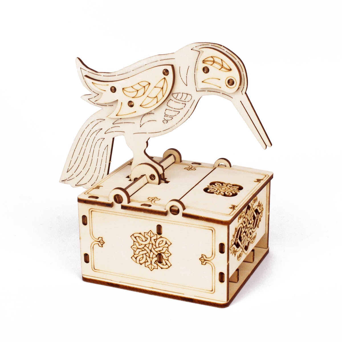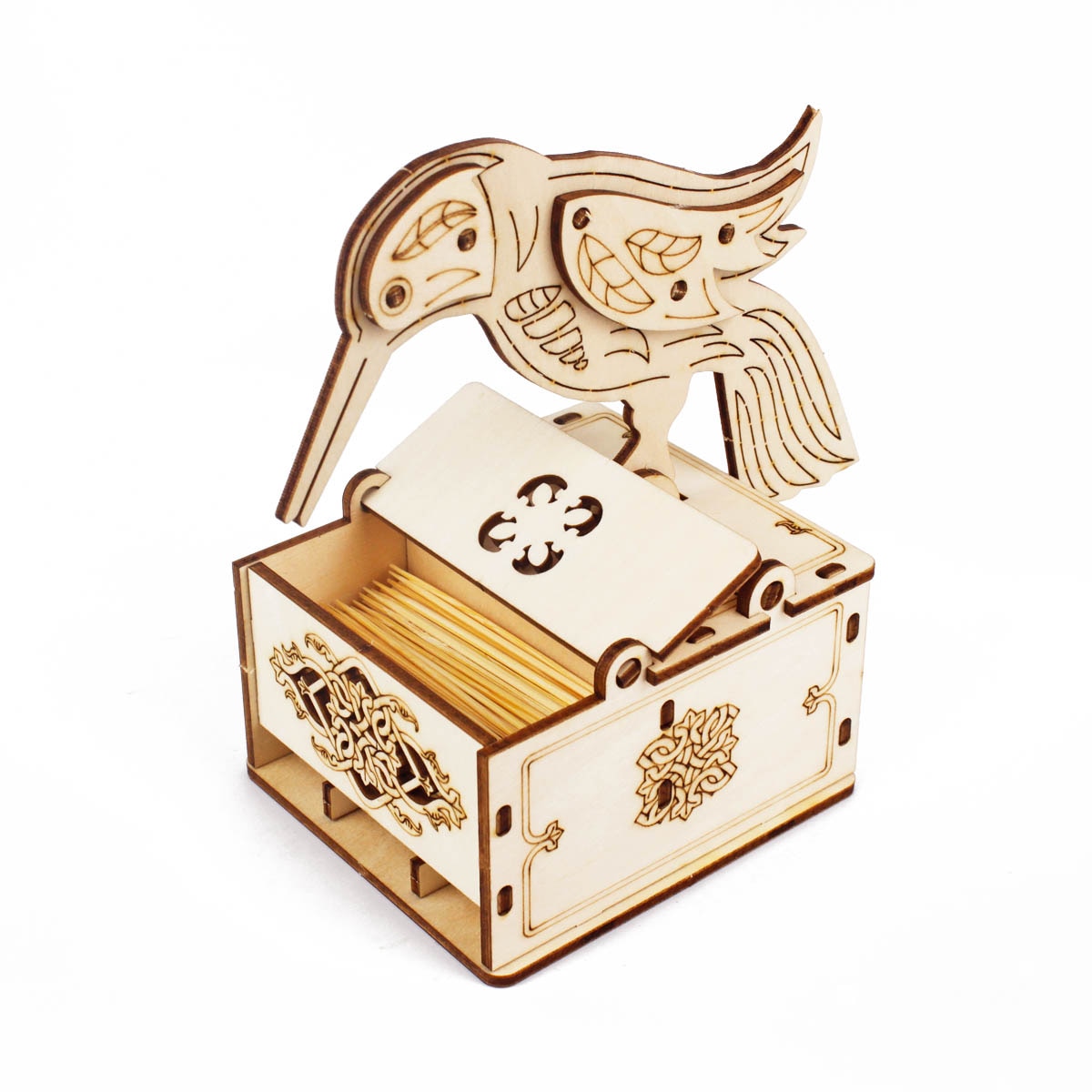 Assembling model of a cute woodpecker-shaped toothpick box. The compact model but hidden inside the smart toothpick box, the toothpick-pecking bird is a scientific masterpiece. A small bird can pick up a toothpick by itself and offer it to its owner, it's great that you own this smart bird, isn't it?