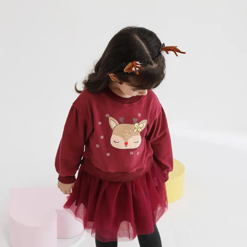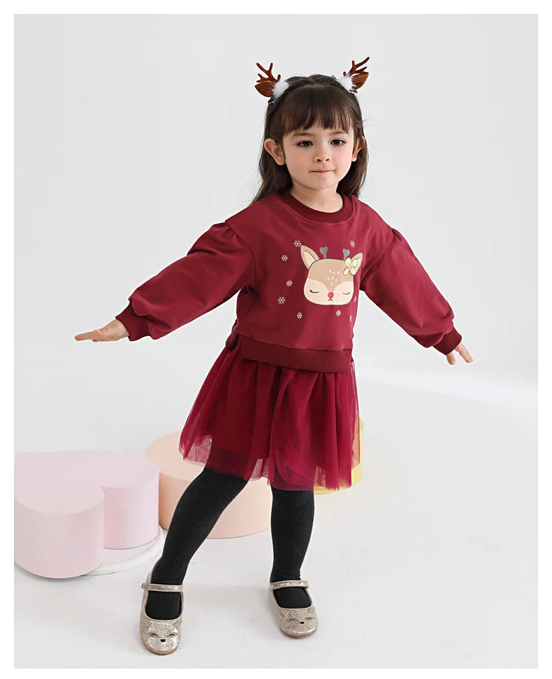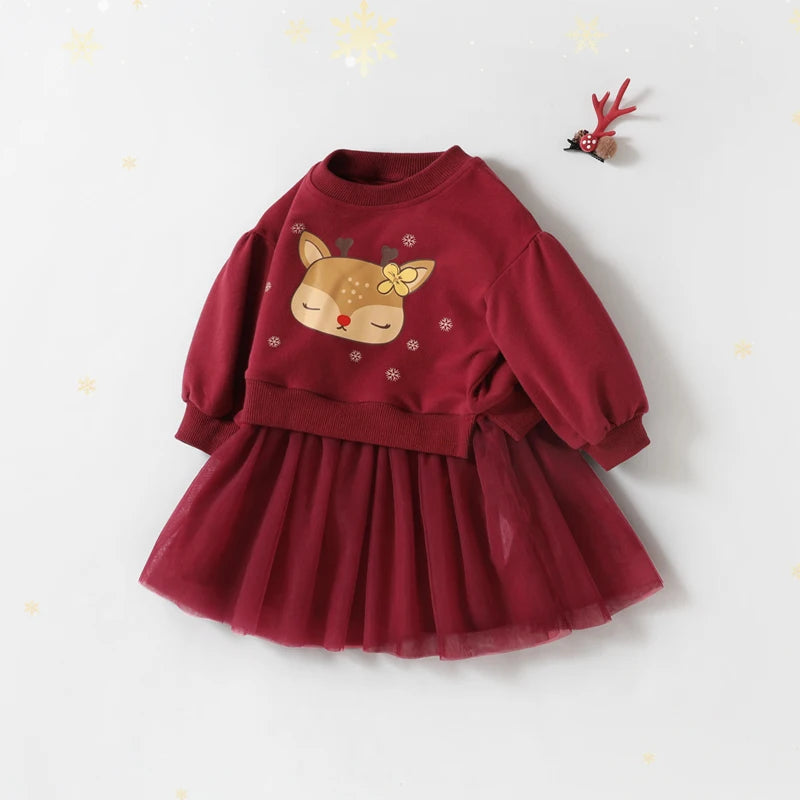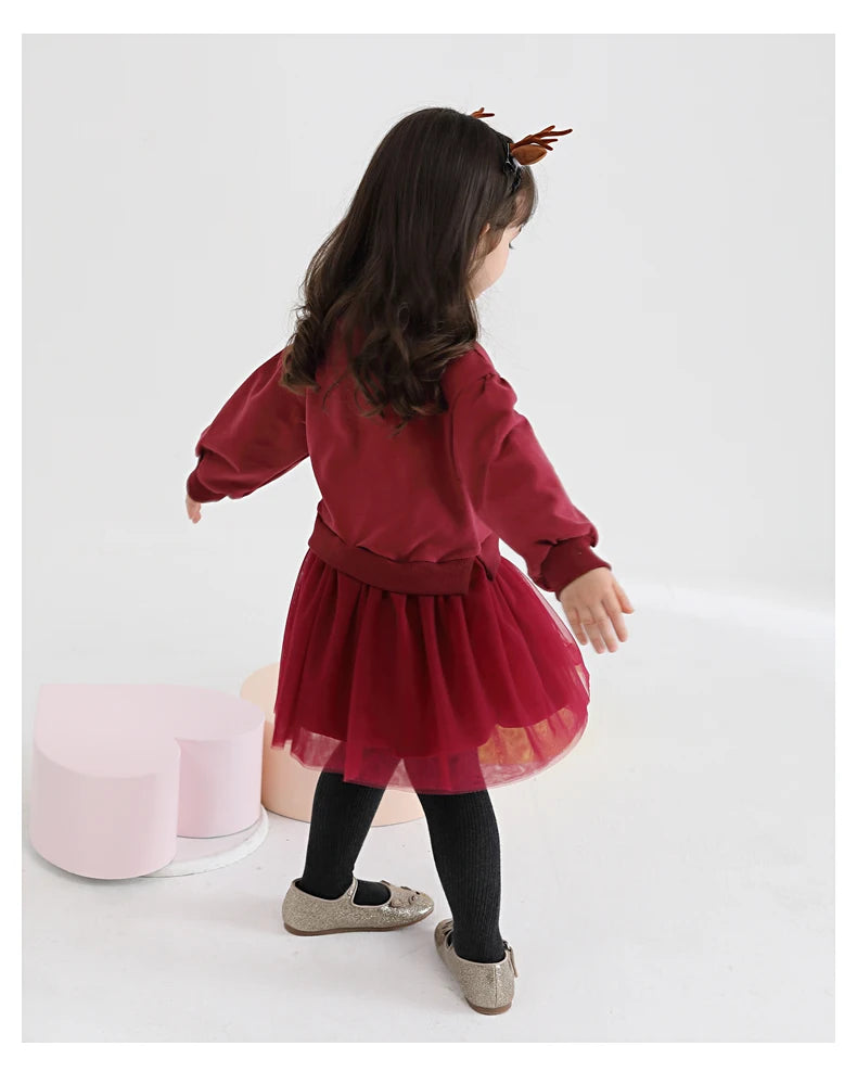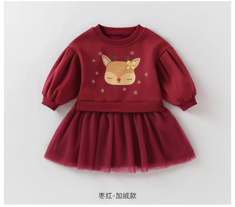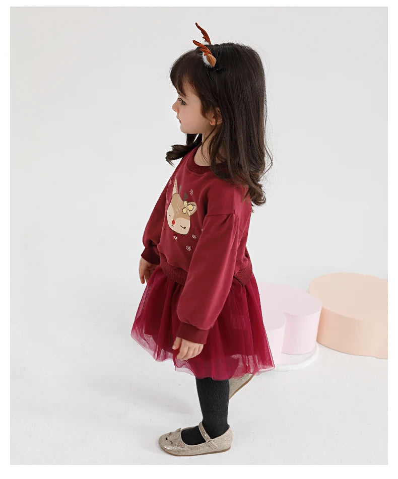 Baby Girls' Mesh Sweater Dress - Red Princess Deer Cartoon Dress