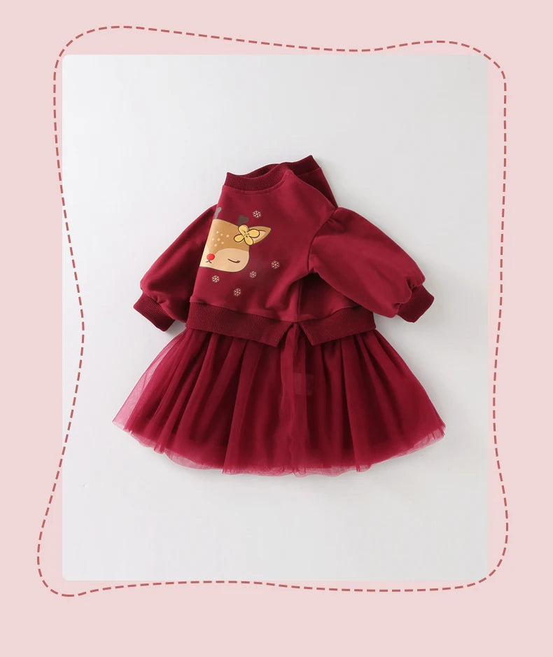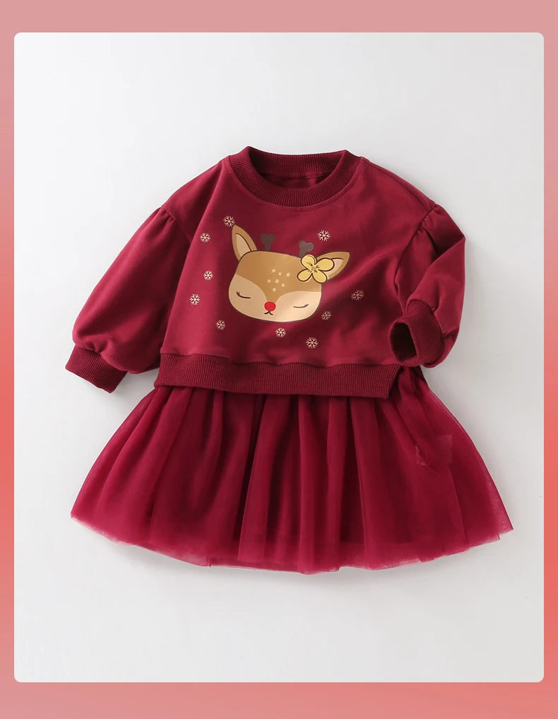 Charm in Every Stitch: Crafted with meticulous attention to detail, this dress features a delightful Princess Deer Cartoon design that adds a touch of whimsy to your child's attire. The vibrant red color exudes energy, making it perfect for both casual and semi-formal occasions.