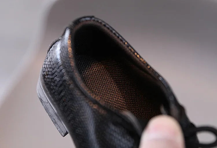 Comfortable Fit: The low heel design provides ample support and stability, ensuring your child's comfort throughout the day, whether he's running around at a party or sitting through classes at school.